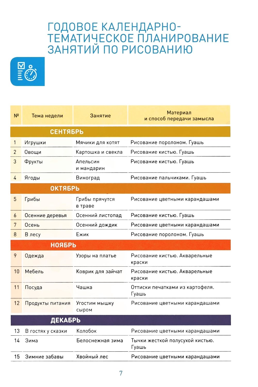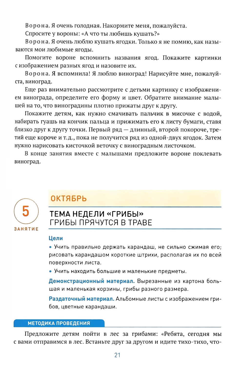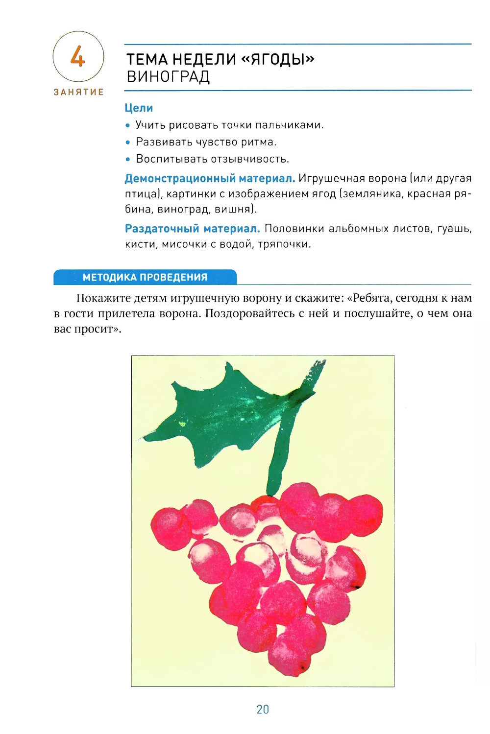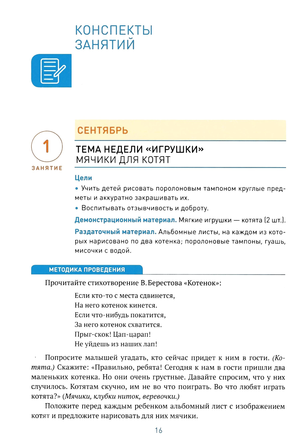 В пособии представлены конспекты увлекательных занятий с детьми 3-4 лет по рисованию цветными карандашами, гуашью и акварельными красками традиционными и нетрадиционными способами. Занятия способствуют развитию эмоциональной отзывчивости, воспитанию чувства прекрасного; развитию воображения, самостоятельности, настойчивости, аккуратности, трудолюбия, умения доводить работу до конца; формированию изобразительных умений и навыков. Представленные в пособии конспекты разработаны в рамках вариативности программы «От рождения до школы». Педагог может по своему усмотрению использовать для занятий с детьми эту книгу или книгу с конспектами Т.С. Комаровой («Изобразительная деятельность в детском саду. Конспекты занятий с детьми 3-4 лет»).| Издательство | Мозаика-Синтез |