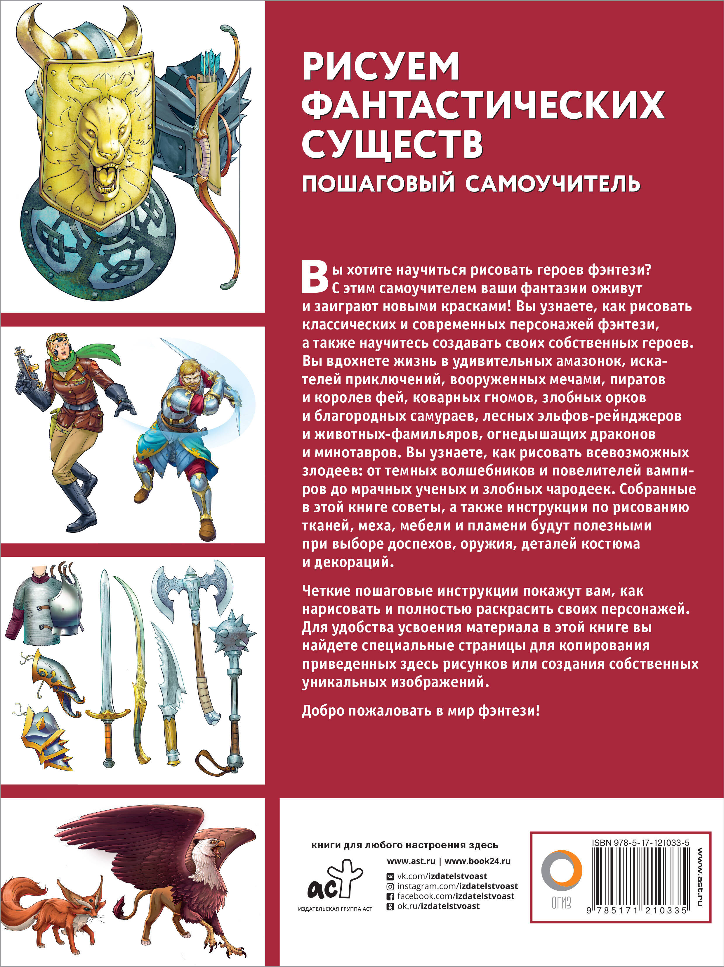 Вы хотите научиться рисовать героев фэнтези? Это просто! С этим самоучителем ваши фантазии оживут и заиграют новыми красками! Вы узнаете, как рисовать классических и современных персонажей фэнтези, а также научитесь создавать своих собственных героев. Вы вдохнете жизнь в удивительных амазонок, искателей приключений, вооруженных мечами, пиратов и королев фей, коварных гномов, злобных орков и благородных самураев, лесных эльфов-рейнджеров и животных-фамильяров, огнедышащих драконов и минотавров. Вы узнаете, как рисовать всевозможных злодеев: от темных волшебников и повелителей вампиров до мрачных ученых и злобных чародеек. Собранные в этой книге советы, а также инструкции по рисованию тканей, меха, мебели, пламени, оружия и доспехов будут полезными при выборе персонажей, деталей костюма и декораций. Четкие пошаговые инструкции покажут вам, как , нарисовать и полностью раскрасить своих персонажей. Для удобства усвоения материала в этой книге вы найдете страницы для копирования приведенных здесь рисунков или создания собственных уникальных изображений. Добро пожаловать в мир фэнтези!| Издательство | Издательство "АСТ" |