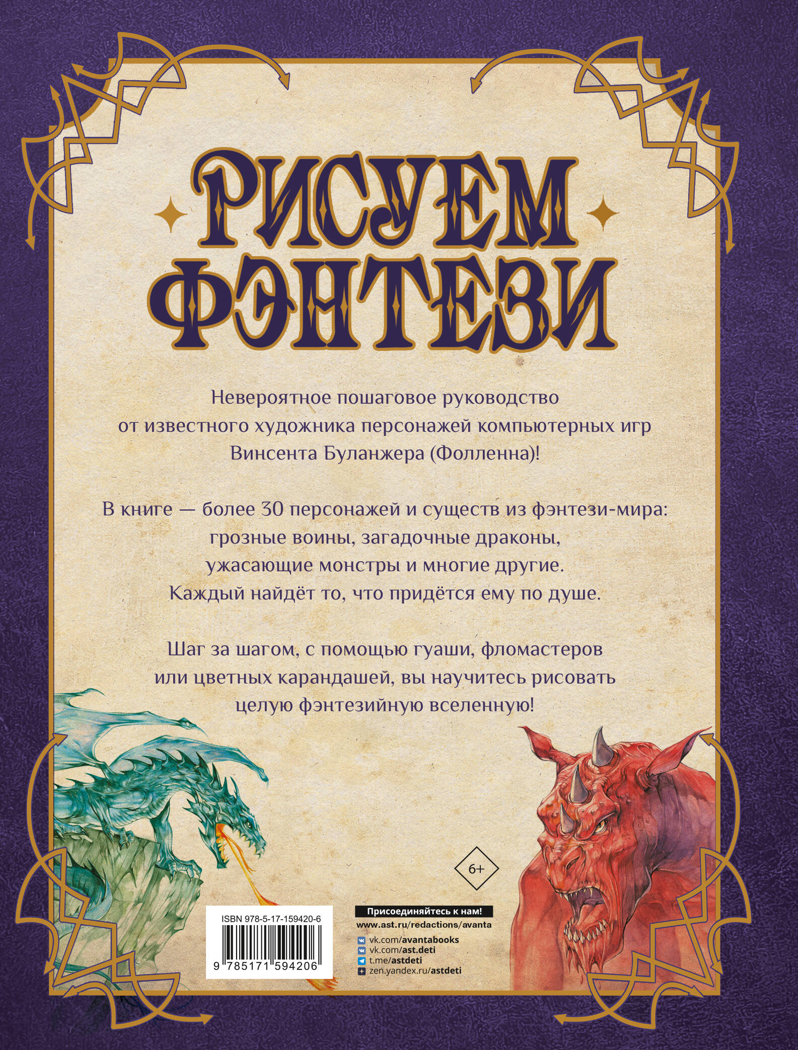 Невероятное пошаговое руководство от известного художника персонажей компьютерных игр Винсента Буланжера (Фолленна)! В книге - более 30 персонажей и существ из фэнтези-мира: грозные воины, загадочные драконы, ужасающие монстры и многие другие. Каждый найдёт то, что придётся ему по душе. Шаг за шагом, с помощью гуаши, фломастеров или цветных карандашей, вы научитесь рисовать целую фэнтезийную вселенную!| Издательство | Издательство "АСТ" |