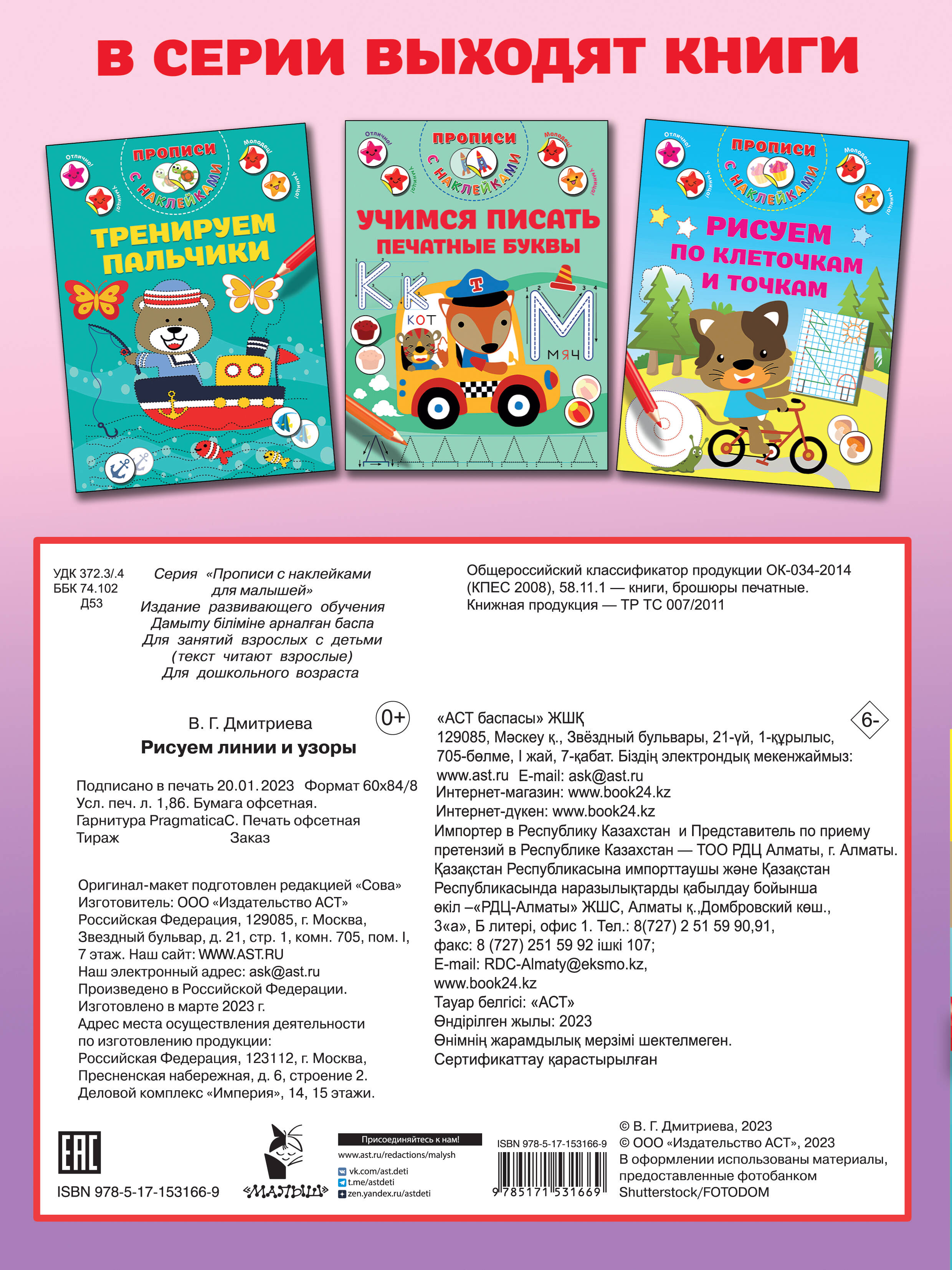 В. Г. Дмитриева - успешный автор детских книг и обучающих пособий. Ее книги - незаменимые помощники для родителей, желающих подготовить своих детей к школе. Серия «Прописи с наклейками для малышей» - отличный помощник родителей для дополнительных занятий с малышом. В нашей развивающей книжке - ни одной скучной страницы! Прекрасный выбор для подготовки руки к письму, развития мелкой моторики, графических навыков и интеллектуальной активности малыша. Благодаря ярким и веселым рисункам каждое задание станет маленькой игрой: полезной и интересной. Детки влюбляются в нашу тетрадку и не выпускают ее из рук - проверено!