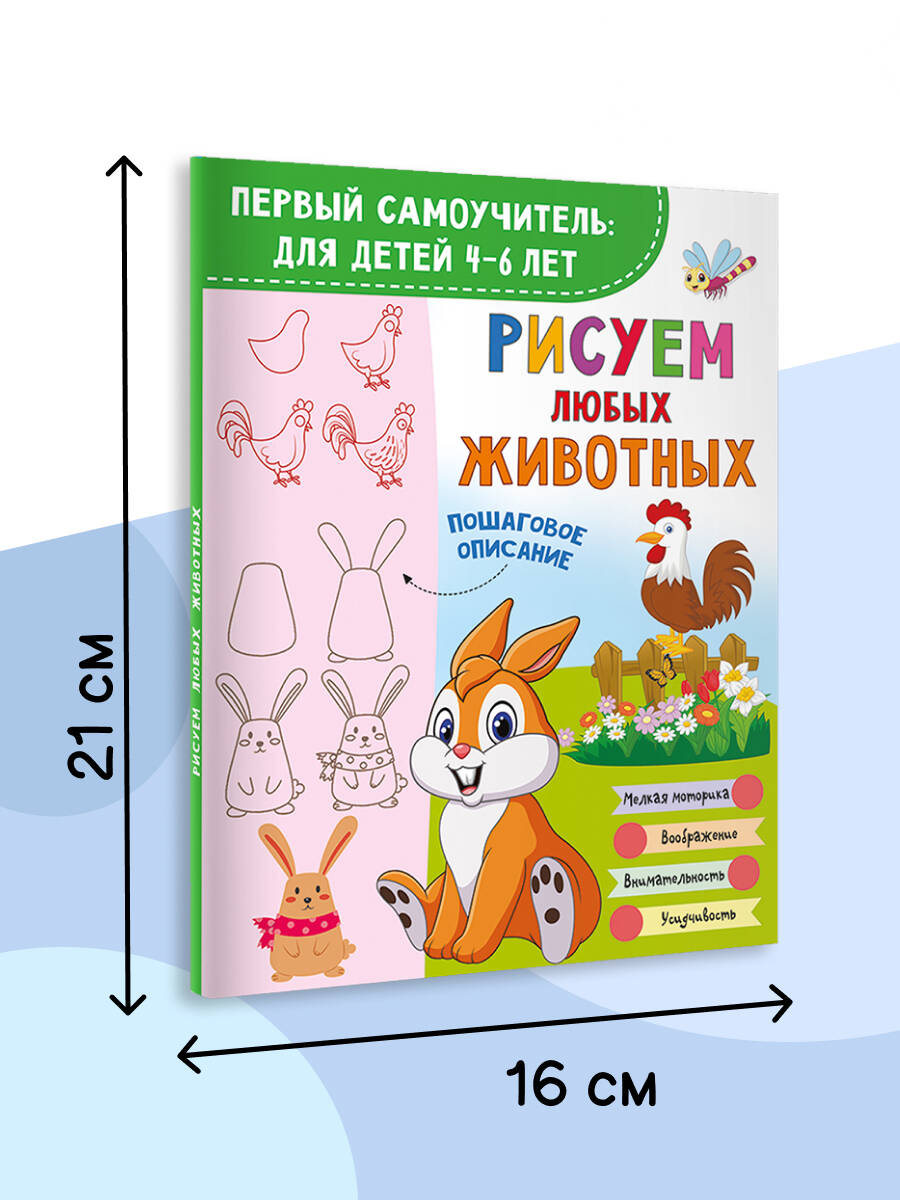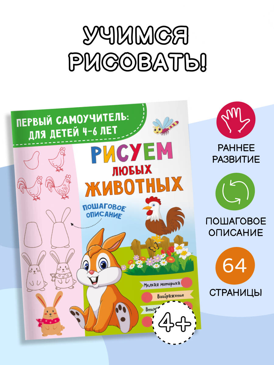 Рисовать могут все! Рисование - это практический навык, как чтение или письмо. Книга «Рисуем любых животных» содержит пошаговые наглядные инструкции, которые помогут ребёнку научиться рисовать симпатичных домашних, диких и морских зверюшек. Благодаря рисованию улучшаются восприятие, зрительная память, мелкая моторика. Также рисование снимает стресс, избавляет от страхов, уменьшает тревожность и поднимает самооценку.| Издательство | Издательство "АСТ" |