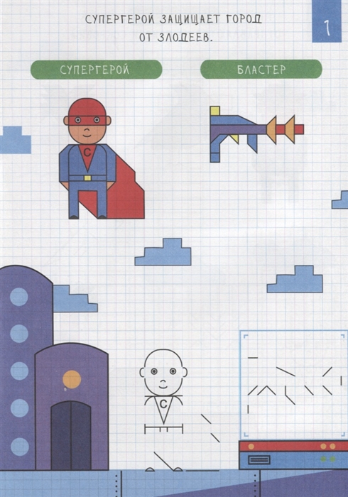 Готовить руку к письму может быть легко и увлекательно! Занятия по книгам серии "Рисуем по клеточкам" помогут дошкольнику развить графические навыки, пространственное мышление, внимательность и аккуратность. Страницы в крупную клетку позволят с лёгкостью рисовать и раскрашивать забавные картинки: супергероя, инопланетян, роботов, пирата и многое другое!