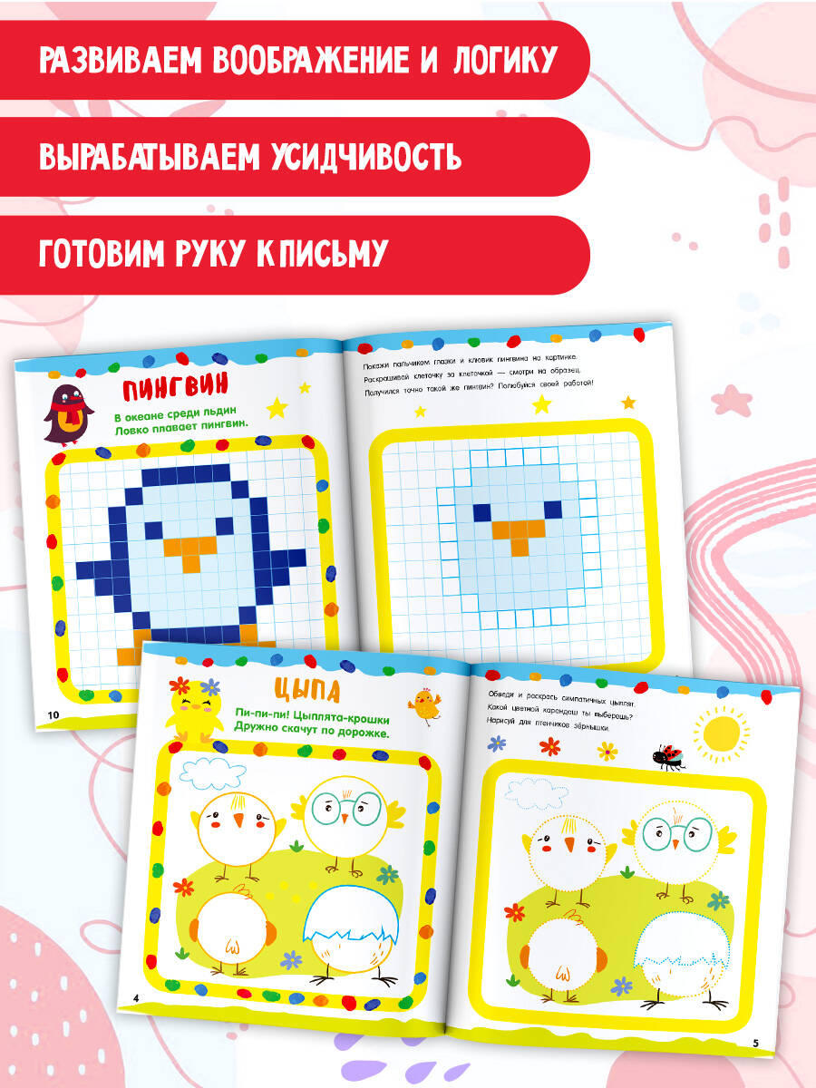 Рисовать по клеточкам и точкам - это увлекательно, весело и очень полезно: • развиваем речь, мелкую моторику и тактильное восприятие; • знакомим с окружающим миром, формируем познавательный интерес; • стимулируем логическое и образное мышление; • формируем представление о предметах, их цвете, форме и размере; • тренируем зрительную память, концентрацию внимания; • развиваем художественное восприятие; • воспитываем интерес к изобразительному искусству: • улучшаем эмоциональное состояние маленького художника. С нашей книжкой малыш получит удовольствие от творчество и результата: потренирует пальчики, научится правильно держать карандаш, а в дальнейшем - писать красиво и аккуратно!| Издательство | ИЗДАТЕЛЬСТВО "АСТ" |