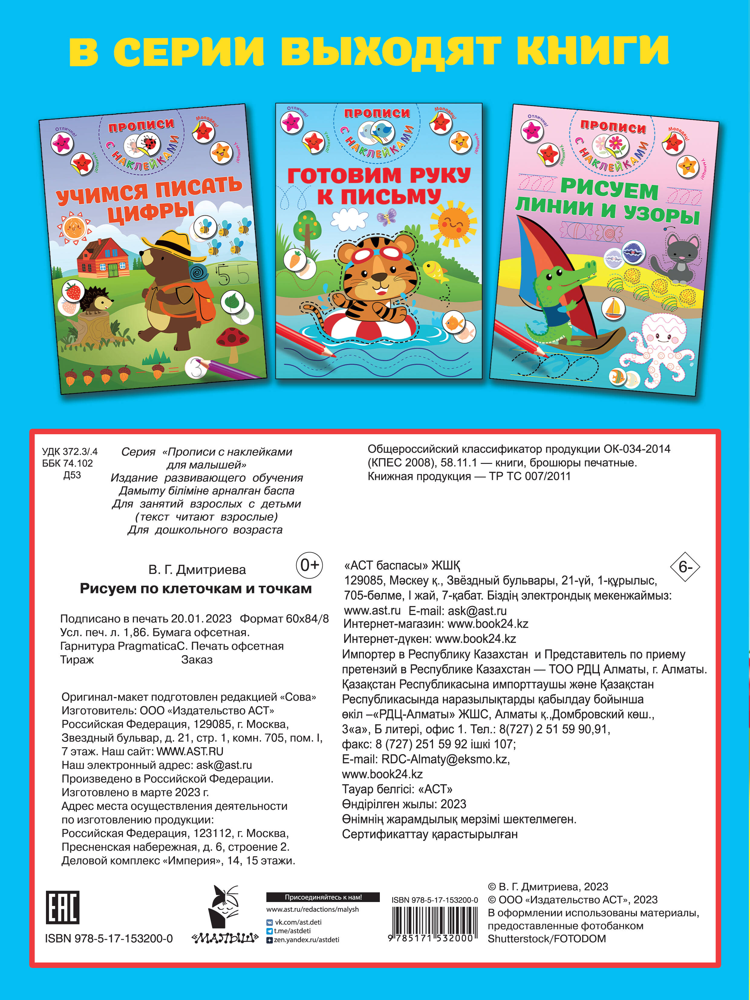 В. Г. Дмитриева - успешный автор детских книг и обучающих пособий. Ее книги - незаменимые помощники для родителей, желающих подготовить своих детей к школе. Серия «Прописи с наклейками для малышей» - отличный помощник родителей для дополнительных занятий с малышом. В нашей развивающей книжке - ни одной скучной страницы! Прекрасный выбор для подготовки руки к письму, развития мелкой моторики, графических навыков и интеллектуальной активности малыша. Благодаря ярким и веселым рисункам каждое задание станет маленькой игрой: полезной и интересной. Детки влюбляются в нашу тетрадку и не выпускают ее из рук - проверено!| Издательство | ИЗДАТЕЛЬСТВО "АСТ" |