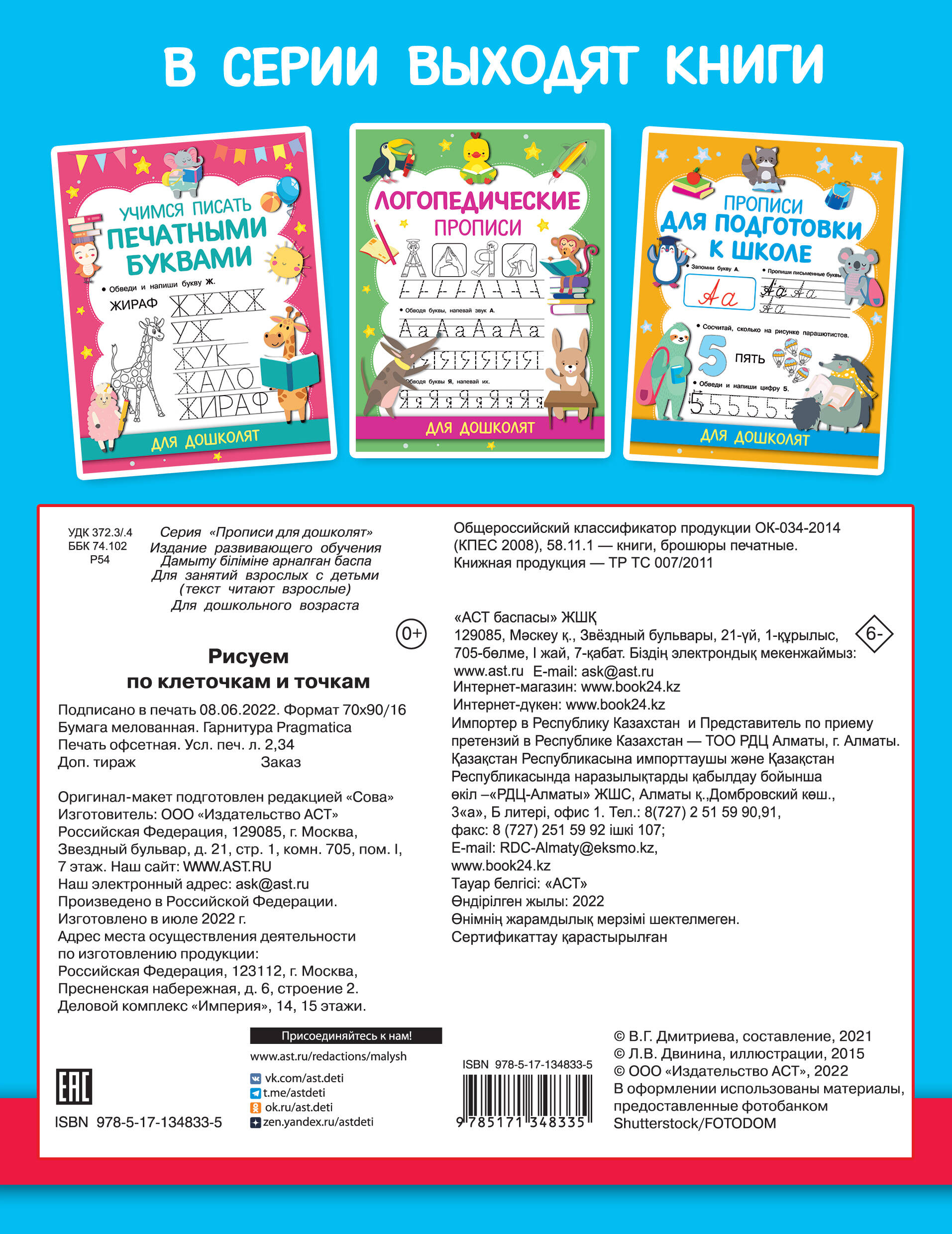 О чем эта книга Прекрасный тренажер для развития мелкой моторики, внимания, памяти, мышления и воображения. Кому эта книга будет интересна Прописи для любознательных дошколят 5-6 лет. В помощь заботливым родителям для подготовки к школе. Особенности этой книги Рисование по клеточкам и точкам - это своего рода игра, которая прекрасно готовит детей к письму. Простые картинки для обводки и дорисовки - для развития мелкой моторики и отработки графических навыков. Интересные и увлекательные задания тренируют мышление и интеллект, мелкую моторику, зрительное восприятие и координацию движений руки ребёнка.