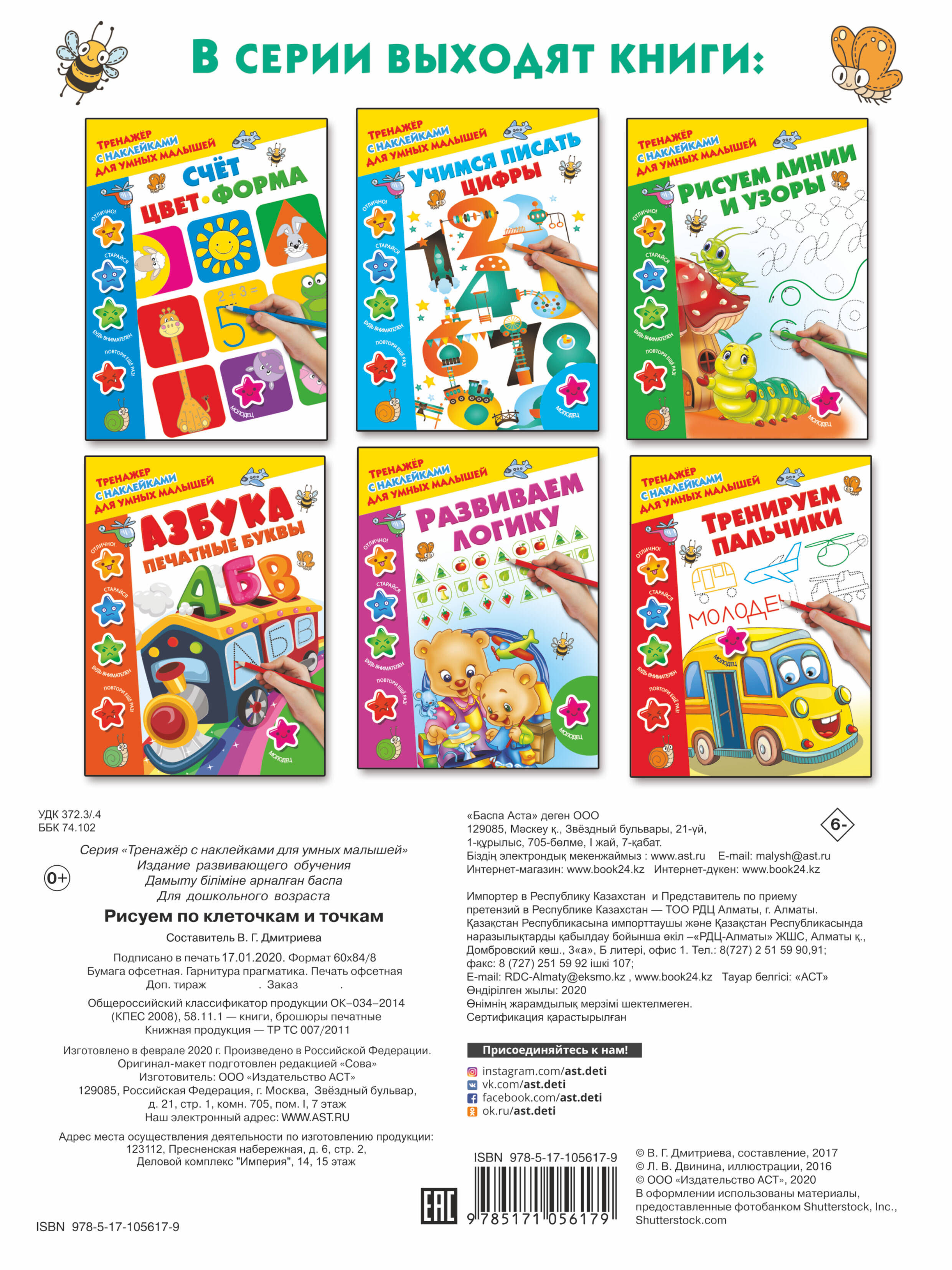 О чем эта книга Развивающие прописи с наклейками-оценками - сборник графических упражнений для развития мелкой моторики. Кому эта книга будет интересна Книгапредставляетинтересдля дошкольников и окажет неоценимую помощь при подготовке руки к письму. Каковы особенности этой книги •Собранные в книжке занимательные задания помогут развить пространственное мышление, графические навыки и творческие способности дошкольника. • Плотная белая бумага позволит использовать ручки, карандаши и даже фломастеры. • Наклейки-оценки помогут поддержать соревновательный дух в детской компании. • Выполняя задания, ребенок без особых усилий подготовит руку к письму. А разнообразие предложенных упражнений поможет поддержать интерес к занятиям. Учить - легко, учиться - интересно!| Издательство | ИЗДАТЕЛЬСТВО "АСТ" |