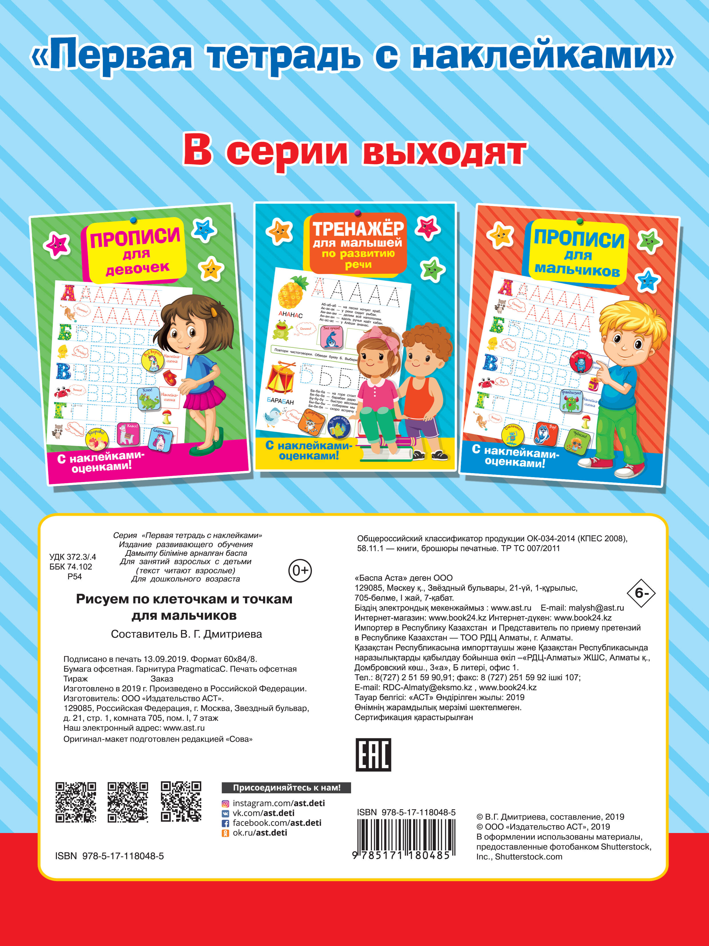 Аннотация: Рисуем по клеточкам и точкам для мальчиков