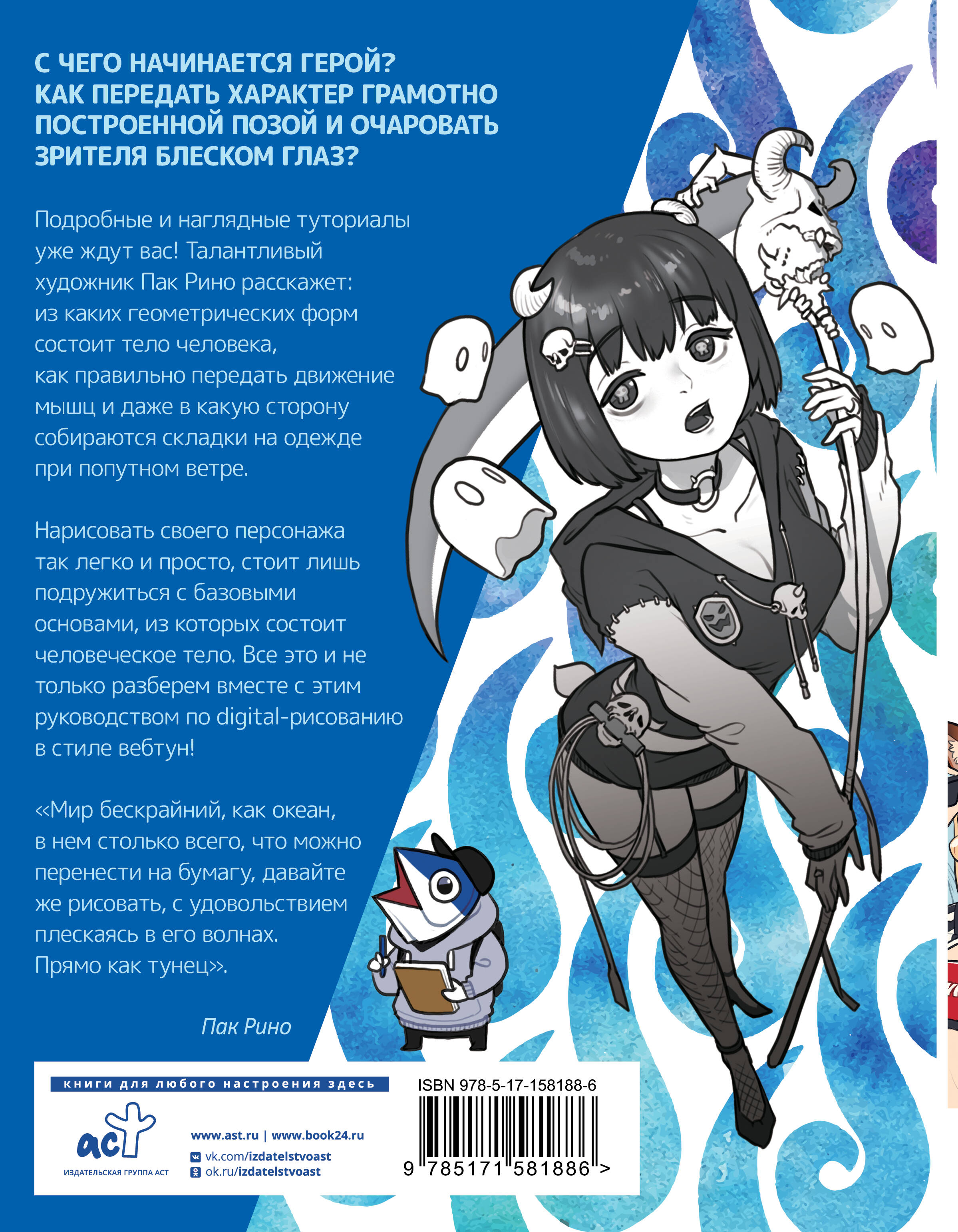 - Руководство по созданию персонажей с самых азов в стиле вебтун для начинающих и любителей. - Пособие держится в корейских топах лучших книг по графическому рисунку. - Для тех, кто ищет руководства, похожие на «Sketch with Asia. Рисуем в стиле аниме и манга», «Учимся рисовать аниме за 5 минут», «Рисуем в стиле манга от нуля до профи! с Лимончиком». В пособии представлена база по созданию своего персонажа - из каких форм построить тело человека, как передать движение, разные позы и ракурсы, как изобразить одежду. С помощью наглядных и подробных туториалов вы сможете с легкостью нарисовать своего персонажа, проработать его характер, эмоции; научитесь с помощью мелких деталей и нюансов создавать разнообразных запоминающихся героев. Эта информация также будет полезна и тем, кто предпочитает рисовать традиционными материалами на бумаге.| Издательство | Издательство "АСТ" |