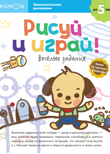Серия «Kumon. Занимательное рисование» состоит из двух тетрадей и поэтапно помогает развить креативное мышление. Тетради зеркально повторяют друга друга по темам и видам заданий. Меняются только картинки, с которыми нужно работать, а также наклейки для мотивации ребенка (в одной тетради кошки, в другой - собаки).