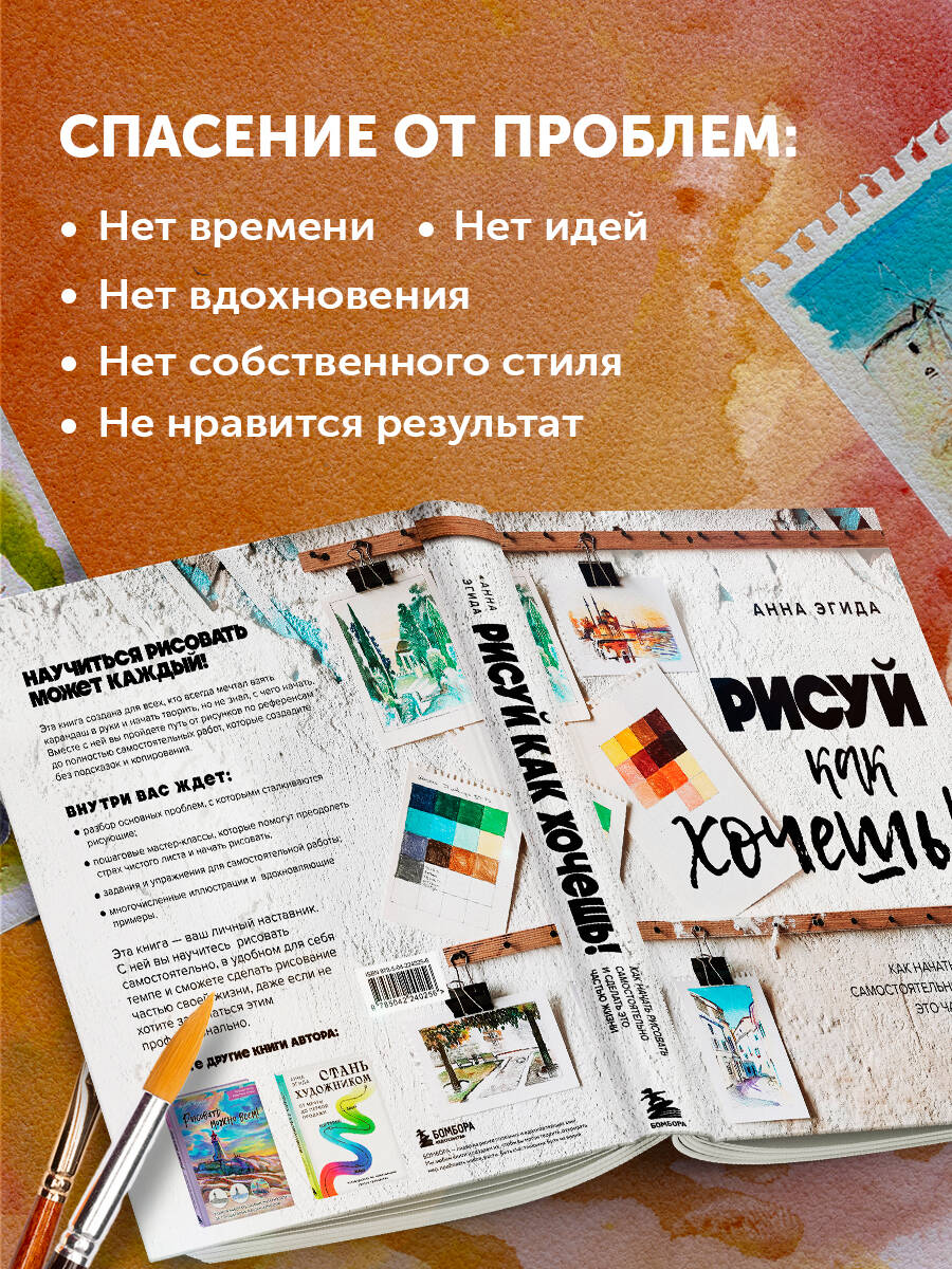 Многие мечтают рисовать, но находят тысячу отговорок, чтобы этого не делать. То времени нет, то идей, то мешает начать страх белого листа. Вместе с автором, художницей Анной Эгидой, вы узнаете, как вписать увлечение в плотный график и быстро войти в состояние творческого потока после тяжелого дня, где найти силы на творчество любого масштаба, как рисовать самостоятельно, а не копировать другие работы, а также как создать среду, которая будет помогать творчеству дома, на работе и даже на природе. Новая книга подскажет, где искать вдохновение, как поймать идею, пока она не исчезла, и как уйти в самостоятельное творчество. Вы научитесь смотреть на свое творчество со стороны и поймете, куда двигаться дальше. Анна Эгида - график, иллюстратор, создательница марафона «Экстрим-скетчинг» и собственных курсов по рисованию, топ-преподаватель школы рисования Kalacheva School. Автор бестселлеров «Быстрые зарисовки с Анной Эгидой» и «Рисовать можно всем».| Издательство | ООО "Издательство "Эксмо" |