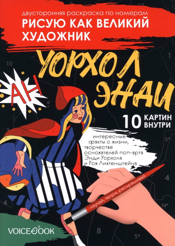 Двусторонние раскраски по номерам - под обложкой вас ждут 10 картин известных художников прошлого века: Сальвадора Дали и Энди Уорхолла.