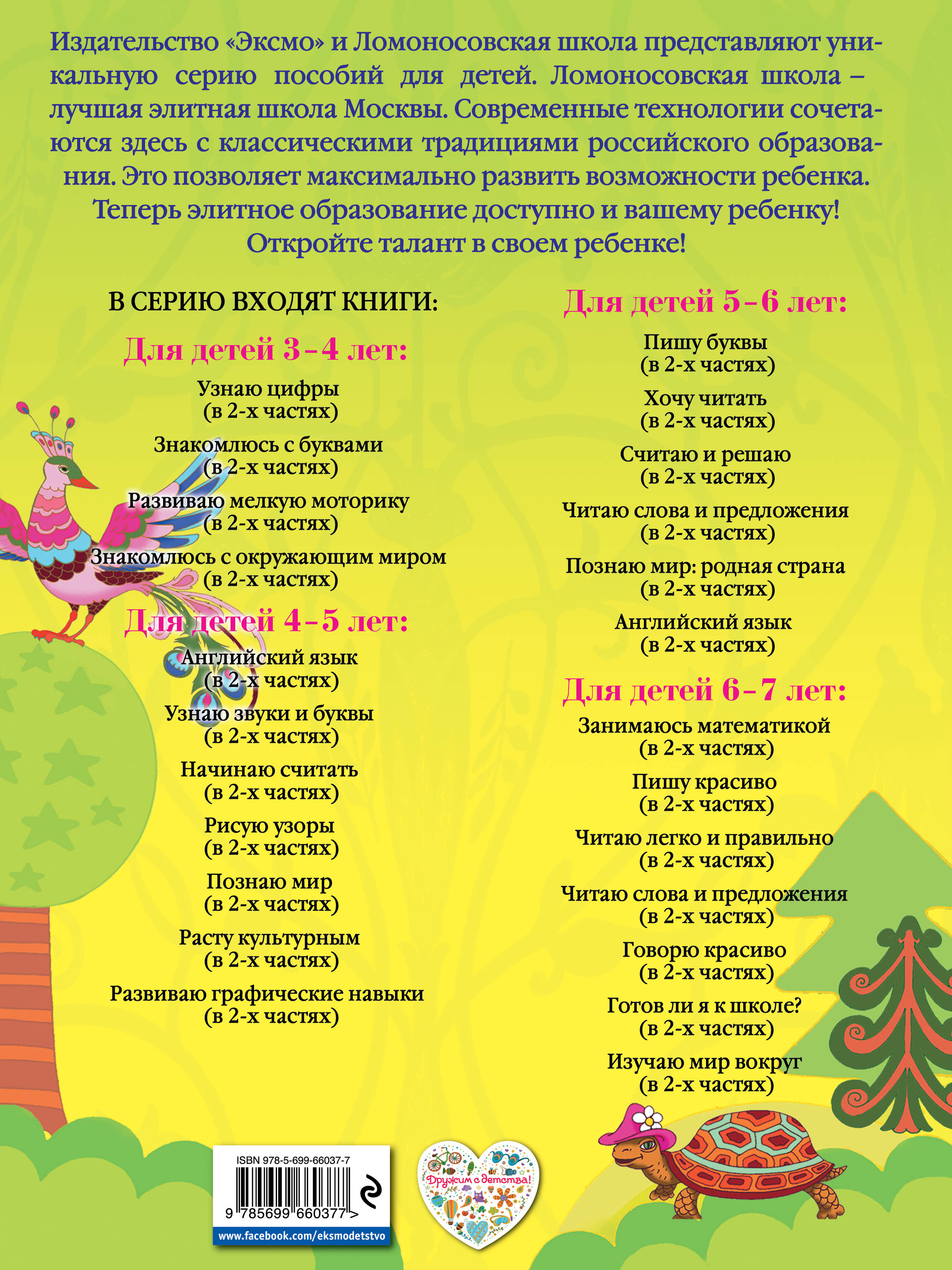 Ломоносовская школа - лучшая элитная школа Москвы. Современные технологии сочетаются здесь с классическими традициями российского образования. Это позволяет максимально развить возможности ребенка. Издательство «Эксмо» и Ломоносовская школа представляют уникальную серию пособий для детей. Теперь элитное образование доступно и вашему ребенку! Откройте талант в своем ребенке!| Издательство | Эксмо |