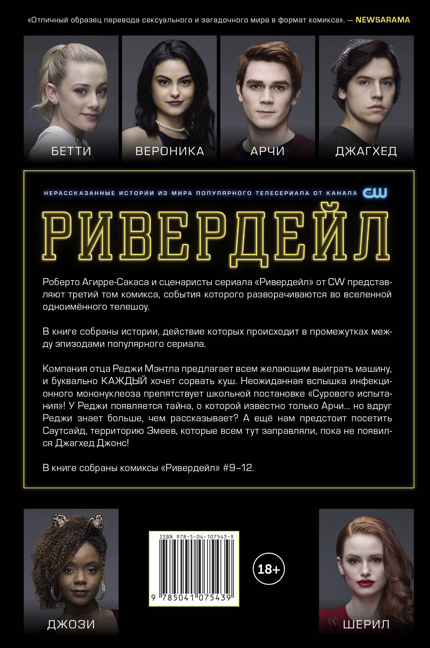 Роберто Агирре-Сакаса и сценаристы сериала "Ривердейл" от CW представляют третий том комикса, события которого разворачиваются во вселенной одноимённого телешоу. В книге собраны истории, действие которых происходит в промежутках между эпизодами популярного сериала. Компания отца Реджи Мэнтла предлагает всем желающим выиграть машину, и буквально КАЖДЫЙ хочет сорвать куш. Неожиданная вспышка инфекционного мононуклеоза препятствует школьной постановке "Сурового испытания"! У Реджи появляется тайна, о которой известно только Арчи… но вдруг Реджи знает больше, чем рассказывает? А ещё нам предстоит посетить Саутсайд, территорию Змеев, которые всем тут заправляли, пока не появился Джагхед Джонс! В книге собраны комиксы "Ривердейл" #9-12.| Издательство | ООО "Издательство "Эксмо" |