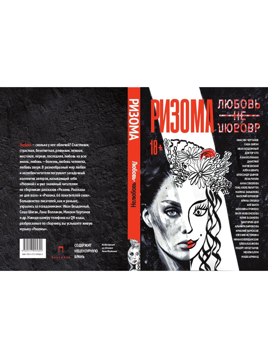 Современные русские писатели, объединившиеся в группу "Ризома", - Иван Бездомный, Саша Шиган, Лана Волланан, Максим Чертанов и др. - предлагают читателю третий сборник своих произведений. На этот раз общей темой и лейтмотивом всех рассказов послужила любовь во всем многообразии ее проявлений: страстная, счастливая, ревнивая, безответная, нежная, жестокая, первая, последняя, единственная. Разнородность художественных приемов и стилей несхожих между собой авторов позволяет раскрыть амбивалентную природу человека, погруженного в сложный мир любви и нелюбви. Сборник содержит QR-коды, используя которые, читатель сможет услышать живую музыку "Ризомы".| Издательство | Т8 RUGRAM |