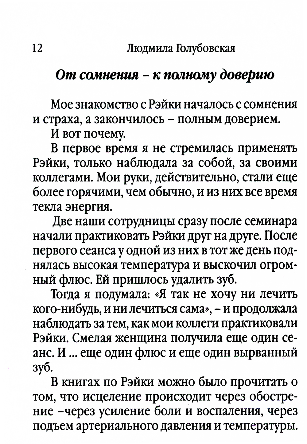 Книга предназначена как для читателя, который не имеет никакой подготовки в Рэйки, так и для посвященных и мастеров Рэйки. Также эта книга для тех, кого интересует вопрос: «А что же такое Рэйки?» Новичок в Рэйки найдет в ней объяснение источника энергии Рэйки и ее действия. В книге рассматривается очень подробно применение Рэйки по первой и по второй ступени. Большое внимание уделяется важным тонкостям и деталям при проведении сеансов. Человек, практикующий Рэйки, найдет в книге большое количество новых техник и приемов.| Издательство | Амрита-Русь |