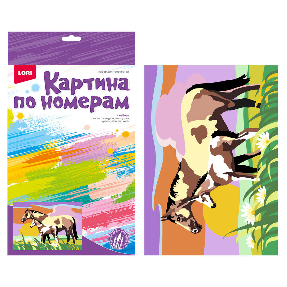 Аннотация: Ркн-078 Картина по номерам для малышей "Пара лошадей"