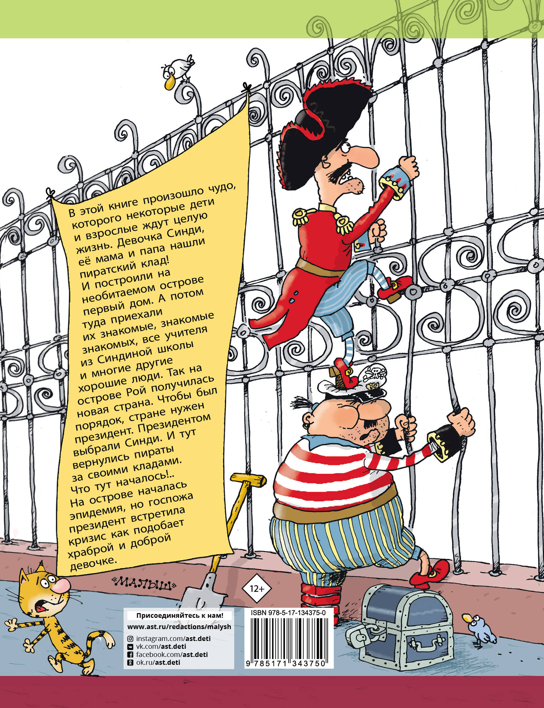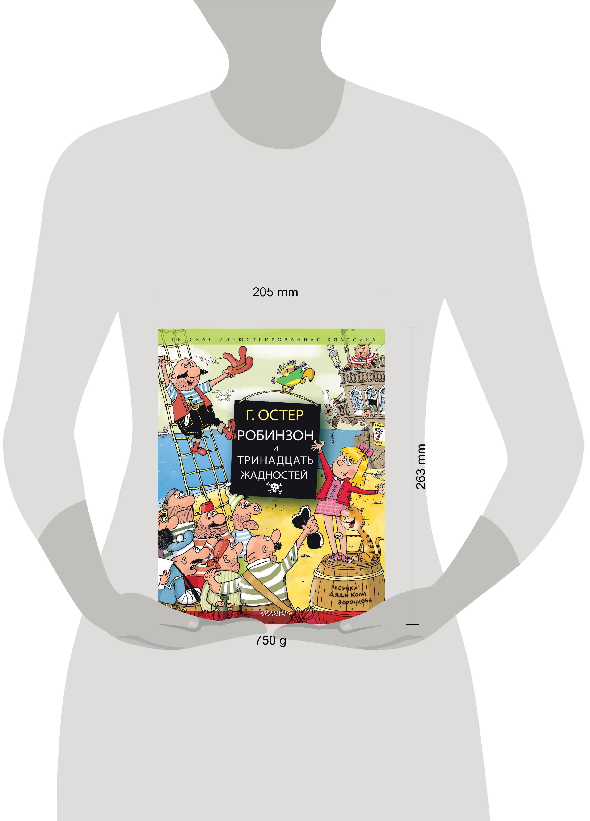 "Робизнзон и тринадцать жадностей" - весёлая и поучительная повесть Григория Остера. Жадности - это золотые монеты, но не простые, а заразные. Заражают они ураганной жадностью, которая передаётся при простом рукопожатии. На первый взгляд очумевшие от жадности больные выглядят очень смешно, но уже на второй становится понятно, насколько они опасны: одна фабрика ремней чего стоит! И со всем этим бороться предстоит очень юной, но очень мудрой госпоже президенту - девочке Синди. Рисунки дяди Коли Воронцова. Для среднего школьного возраста.| Издательство | Издательство "АСТ" |