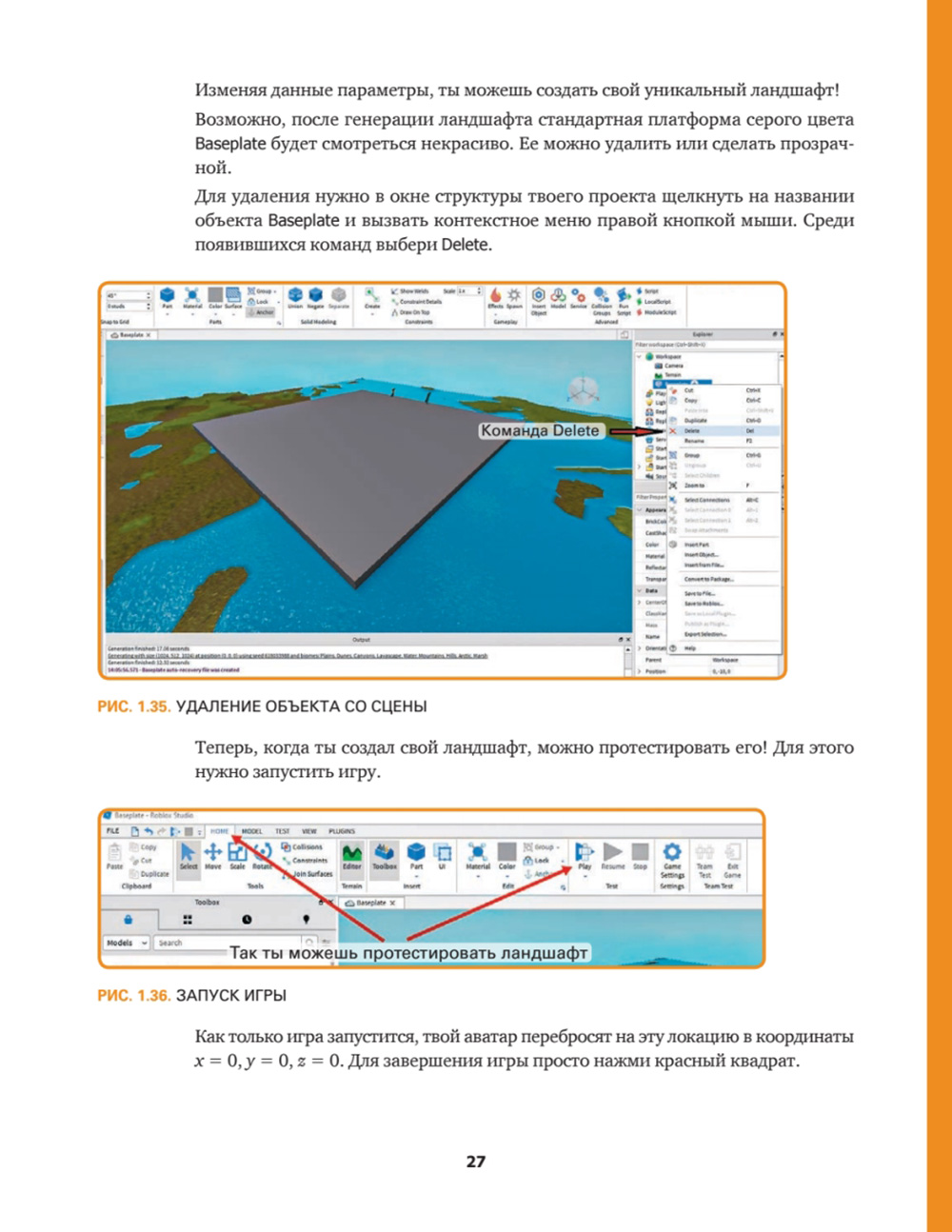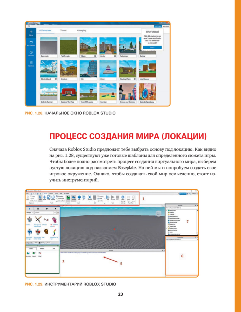 - Наглядные инструкции по созданию игровых объектов (каждое действие иллюстрируется скриншотом).