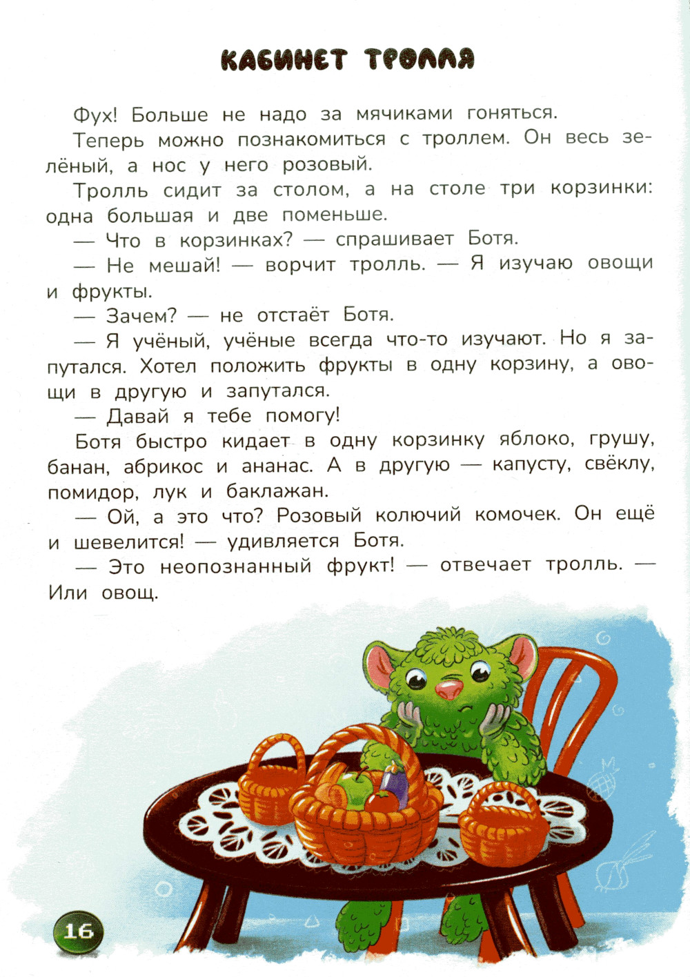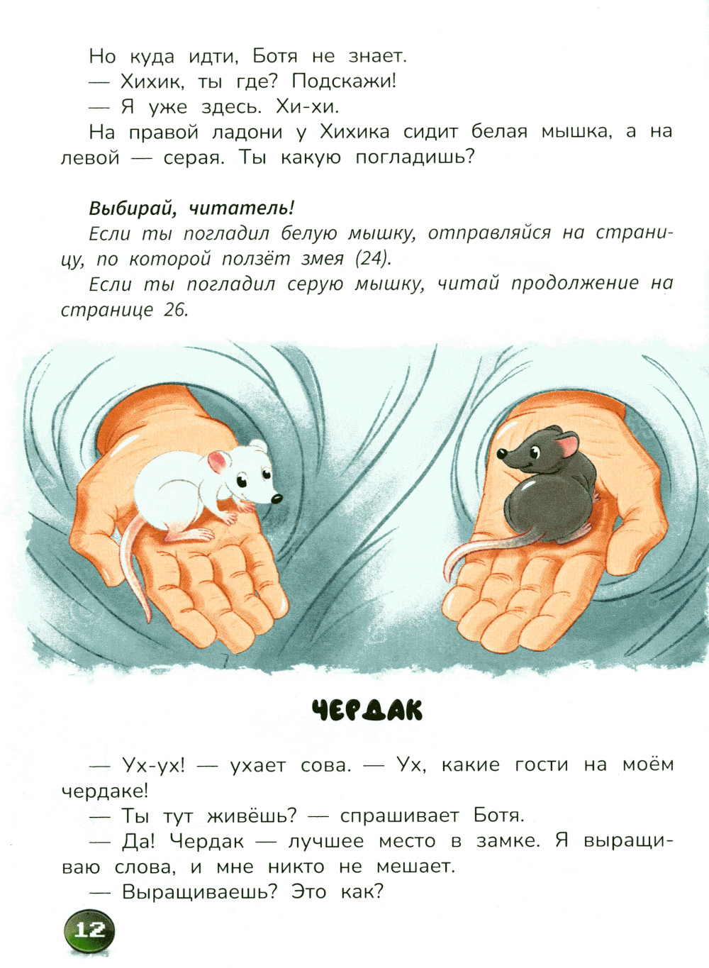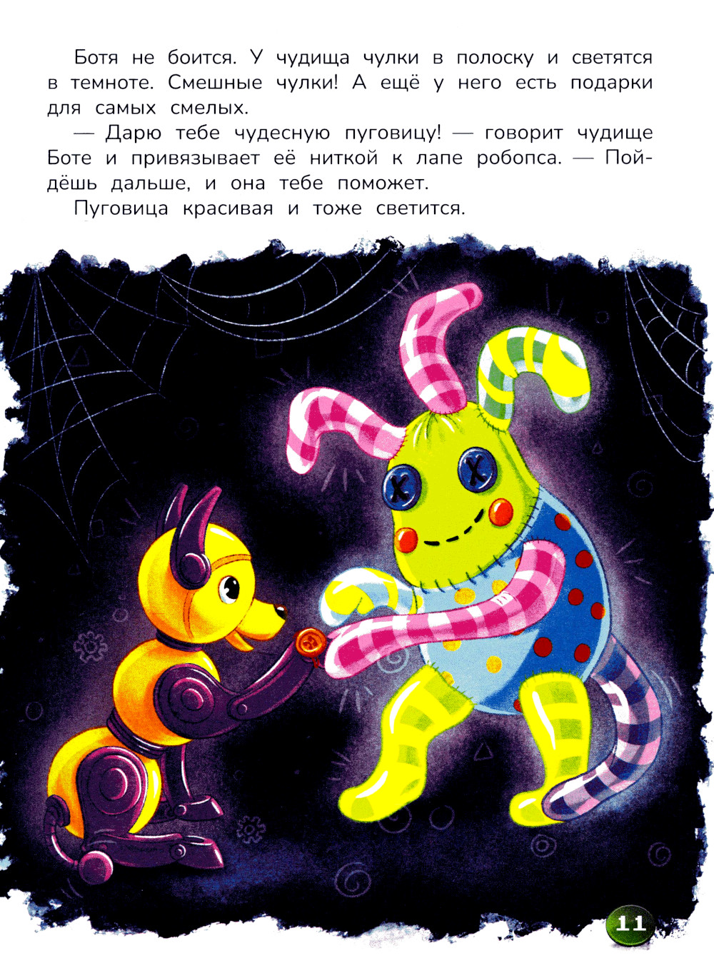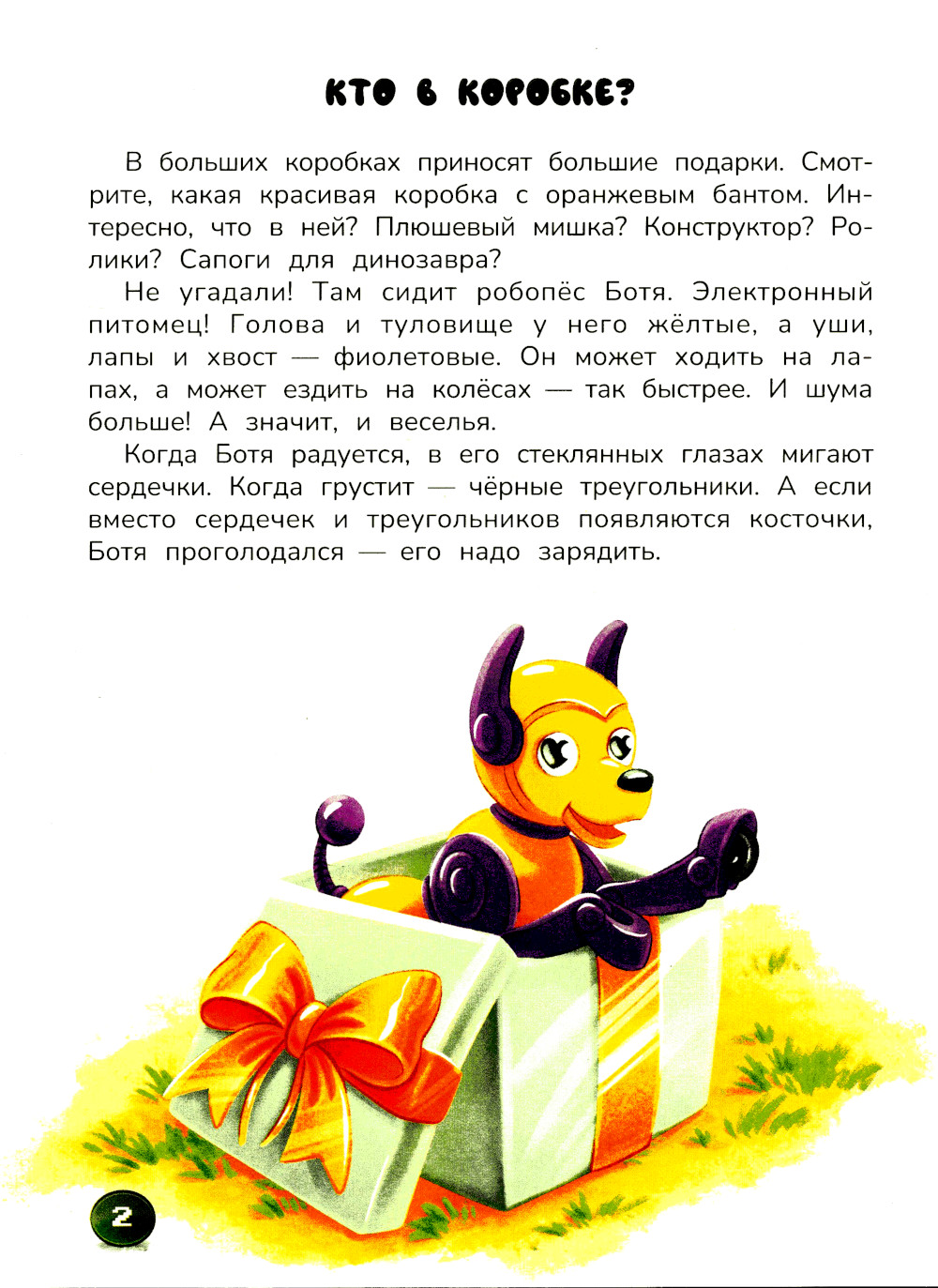 Помоги робопсу Боте найти своего хозяина! Вместе с ним ты попадёшь в таинственный замок, полный загадок. В каждой комнате вас ждут разные приключения и разные герои, в зависимости оттого, какой вариант ты выберешь для Боти. Только пройдя через все эти комнаты, Ботя встретится с хозяином. А помогает псу доброе привидение - старик Хихик. В конце есть четыре варианта финала и четыре разных хозяина у Боти.| Издательство | Феникс |