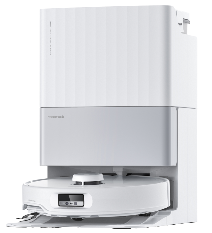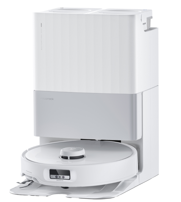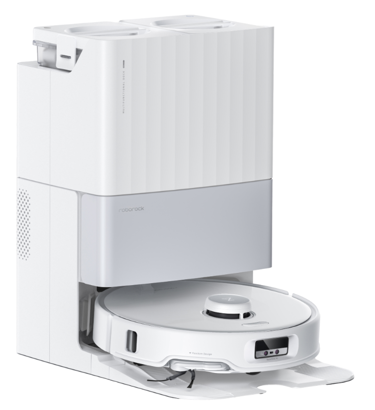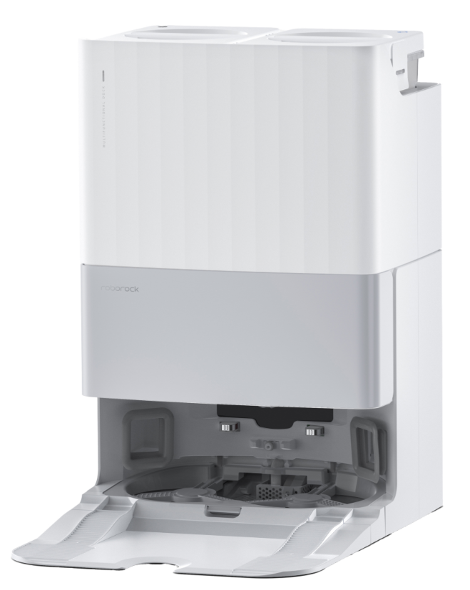 Док-станция автоматически опорожняет пылесборник, наполняет резервуар для воды и очищается с помощью вращающихся скребков и горячей воды, что сокращает необходимость ручного обслуживания на срок до семи недель.