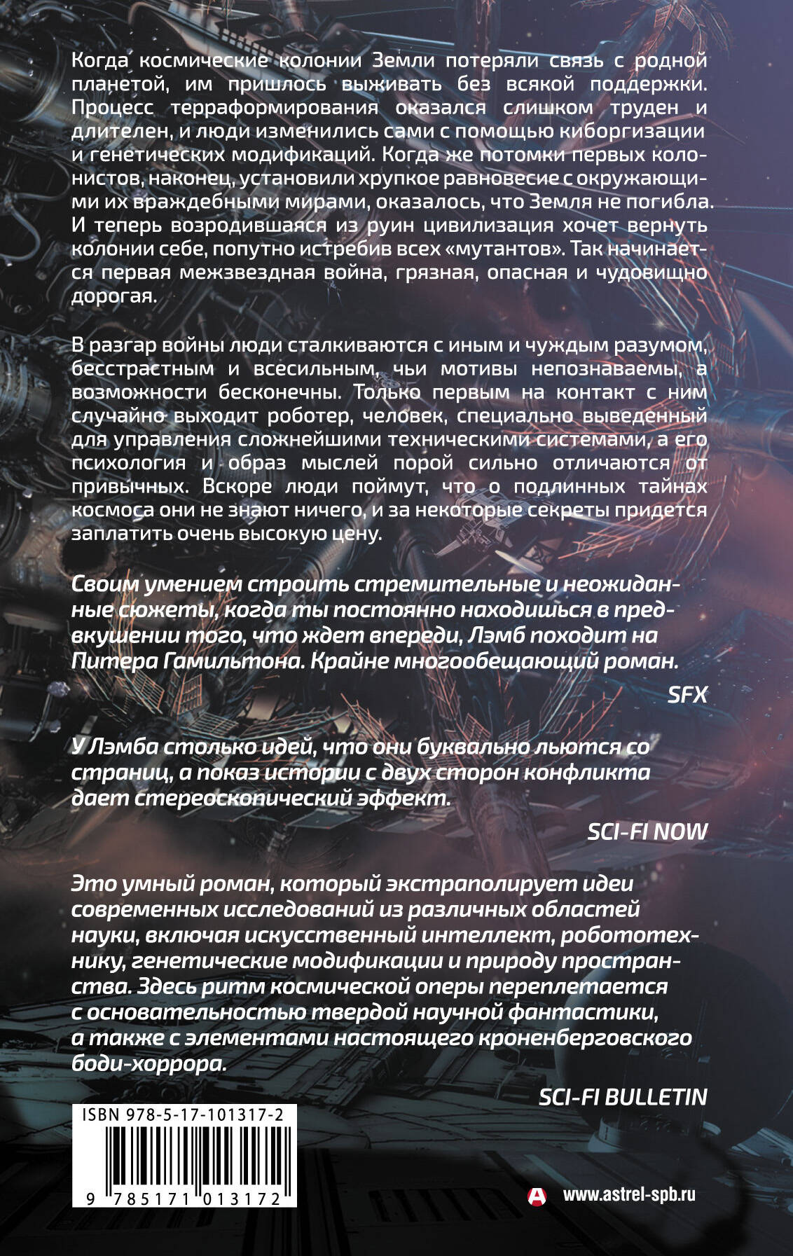 Когда космические колонии Земли потеряли связь с родной планетой, им пришлось выживать без всякой поддержки. Процесс терраформирования оказался слишком труден и длителен, и люди изменились сами с помощью киборгизации и генетических модификаций. Когда же потомки первых колонистов, наконец, установили хрупкое равновесие с окружающими их враждебными мирами, оказалось, что Земля не погибла. И теперь возродившаяся из руин цивилизация хочет вернуть колонии себе, попутно истребив всех "мутантов". Так начинается первая межзвездная война, грязная, опасная и чудовищно дорогая. В разгар войны люди сталкиваются с иным и чуждым разумом, бесстрастным и всесильным, чьи мотивы непознаваемы, а возможности бесконечны. Только первым на контакт с ним случайно выходит роботер, человек, специально выведенный для управления сложнейшими техническими системами, а его психология и образ мыслей порой сильно отличаются от привычных. Вскоре люди поймут, что о подлинных тайнах космоса они не знают ничего и за некоторые секреты придется заплатить очень высокую цену.| Издательство | ИЗДАТЕЛЬСТВО "АСТ" |