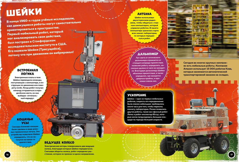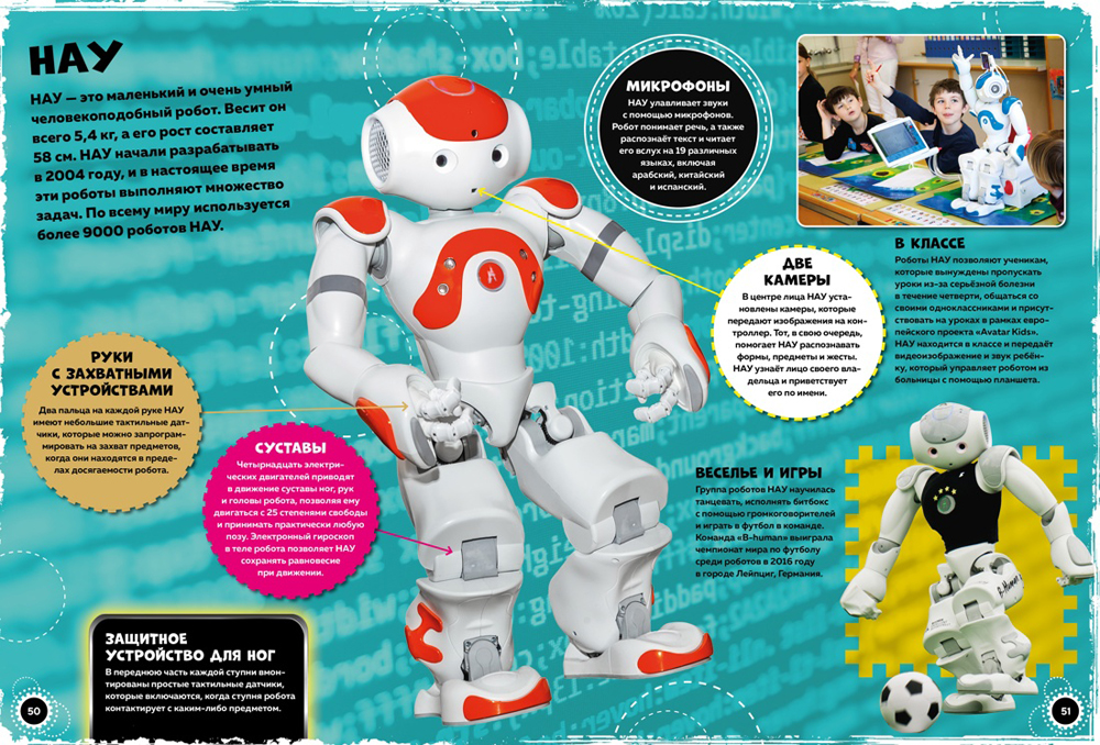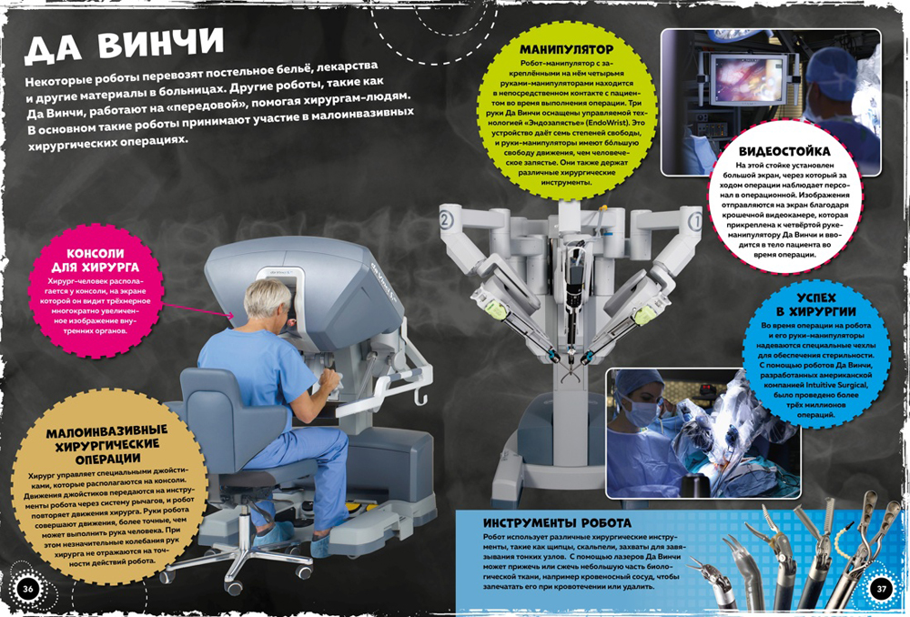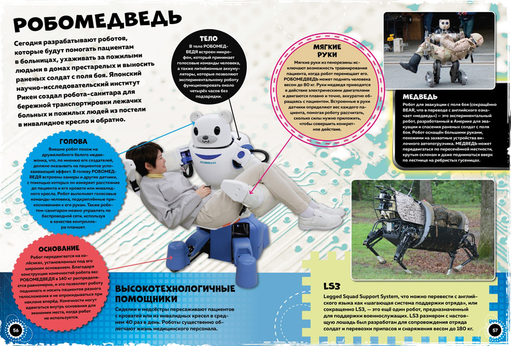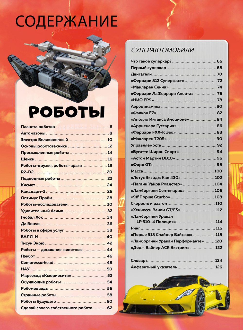 Вы узнаете всё о первых роботах, а также о новейших проектах, разрабатываемых учёными по всему миру, и даже сможете собрать собственного робота. В разделе о суперавтомобилях вас ждут самые известные, быстрые и дорогие автомобили в мире, их технические характеристики, а также интересная информация о типах двигателей, управляемости автомобиля, аэродинамике и многом другом. Посмотрите, как эти удивительные машины и устройства преображают нашу жизнь, делая её не только удобнее, но и интереснее!