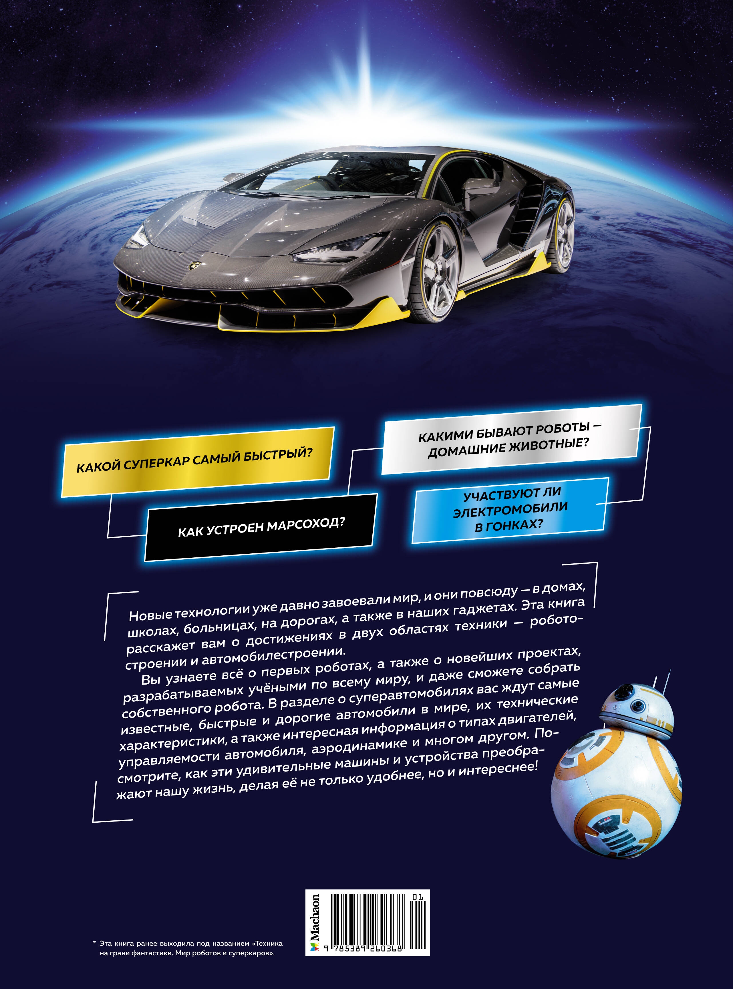 Новые технологии уже давно завоевали мир, и они повсюду - в домах, школах, больницах, на дорогах, а также в наших гаджетах. Эта книга расскажет вам о достижениях в двух областях техники - роботостроении и автомобилестроении. Вы узнаете всё о первых роботах, а также о новейших проектах, разрабатываемых учёными по всему миру, и даже сможете собрать собственного робота. В разделе о суперавтомобилях вас ждут самые известные, быстрые и дорогие автомобили в мире, их технические характеристики, а также интересная информация о типах двигателей, управляемости автомобиля, аэродинамике и многом другом. Посмотрите, как эти удивительные машины и устройства преображают нашу жизнь, делая её не только удобнее, но и интереснее! * Эта книга ранее выходила под названием "Техника на грани фантастики. Мир роботов и суперкаров".| Издательство | Азбука-Аттикус Издат.группа ООО |