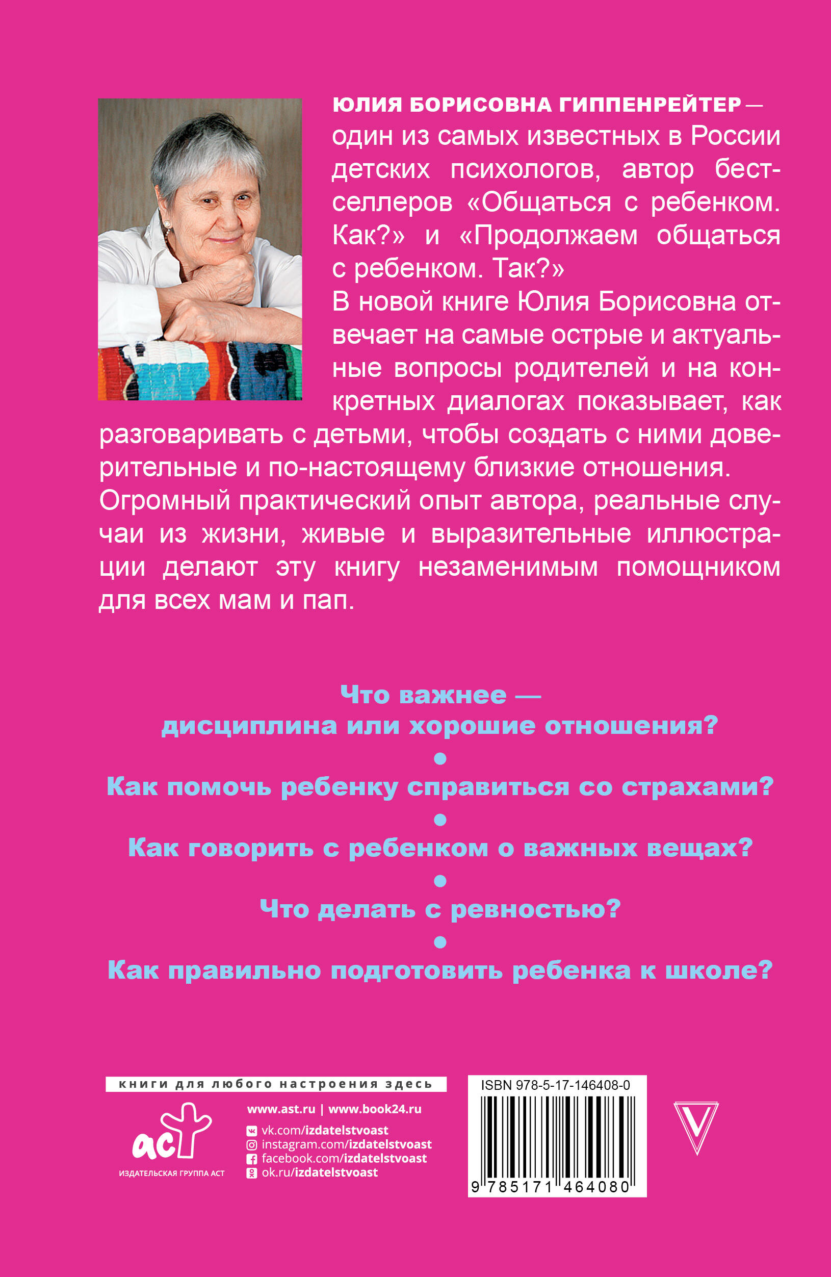 Юлия Борисовна Гиппенрейтер - один из самых исзвестных в России детских психологов., автор бестселлеров "Общаться с ребенком. Как?" и "Продолжаем общаться с ребенком. Так?" В новой книге Юлия Борисовна отвечает на самые острые и актуальные вопросы родителей и на конкретных диалогах показывает, как разговаривать с детьми, чтобы создать с ними доверительные и по-настоящему близкие отношения. Огромный практический опыт автора, реальные случаи из жизни, живые и выразительные иллюстрации делают эту книгу незаменимым помощником для всех мам и пап.| Издательство | ИЗДАТЕЛЬСТВО "АСТ" |