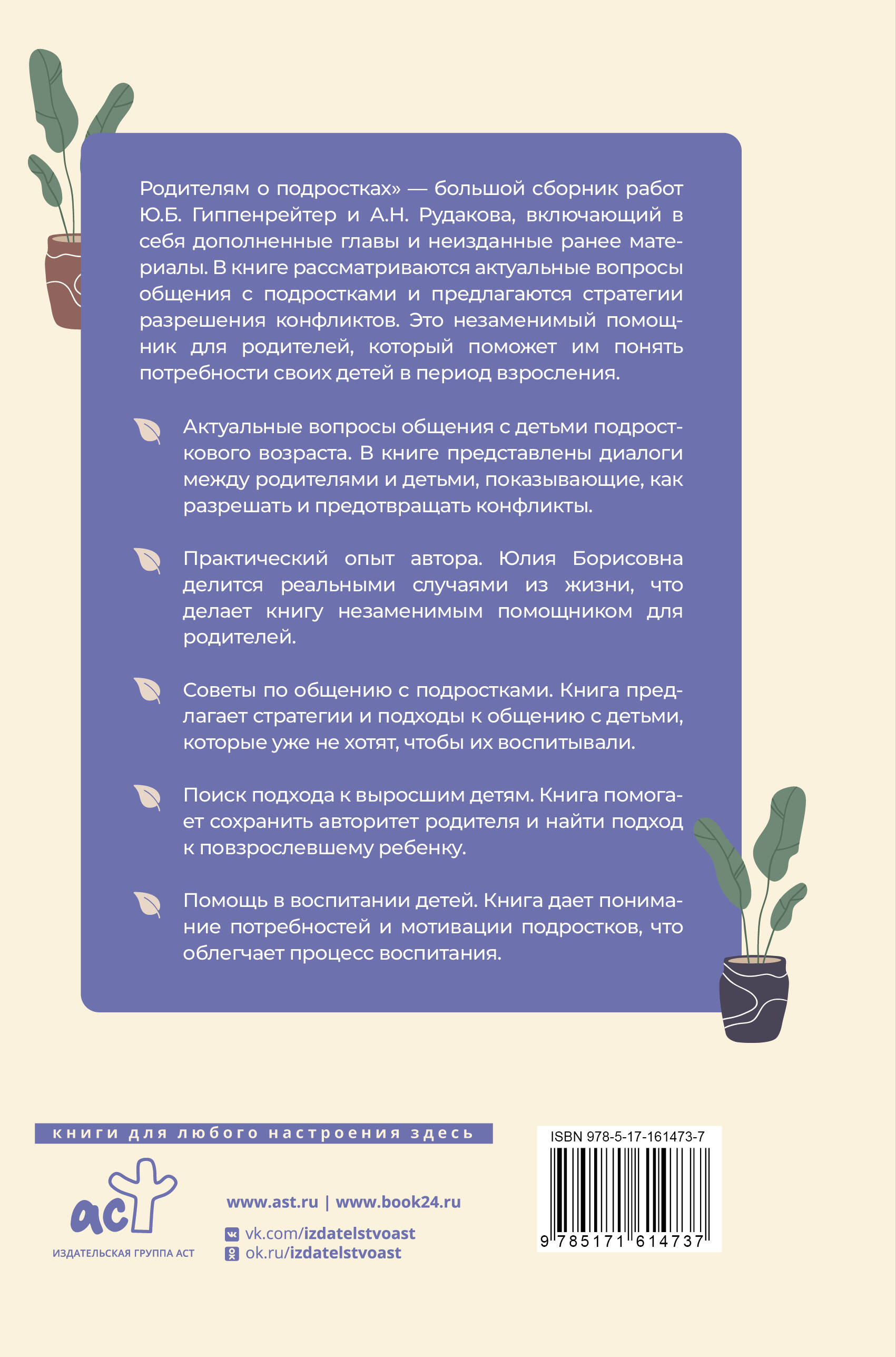Эту книгу написали известный психолог - профессор Юлия Борисовна Гиппенрейтер, и её супруг профессор Алексей Николаевич Рудаков. Они вместе уже больше 50 лет. На протяжении всего этого времени они убеждались: главное в семье - диалог! Именно в процессе их диалога создавалась эта уникальная и очень нужная сейчас книга. "Родителям о подростках" - большой сборник работ, включающий в себя дополненные главы и неизданные ранее материалы. В книге рассматриваются актуальные вопросы общения с подростками и предлагаются стратегии разрешения конфликтов. Это незаменимый помощник для родителей, который поможет им понять потребности своих детей в период взросления. • Актуальные вопросы общения с детьми подросткового возраста. В книге представлены диалоги между родителями и детьми, показывающие, как разрешать и предотвращать конфликты. • Книга дает понимание потребностей и мотивации подростков, что помогает наладить гармоничное общение с ними. • Авторы делятся реальными случаями из жизни, что помогает родителям находить выходы из трудных ситуаций с ребенком. • Советы по общению с подростками. Книга предлагает подходы к общению с детьми, которые уже не хотят, чтобы их воспитывали. • Книга помогает сохранить авторитет родителя и установить дружеские отношения с повзрослевшим ребенком.| Издательство | Издательство "АСТ" |