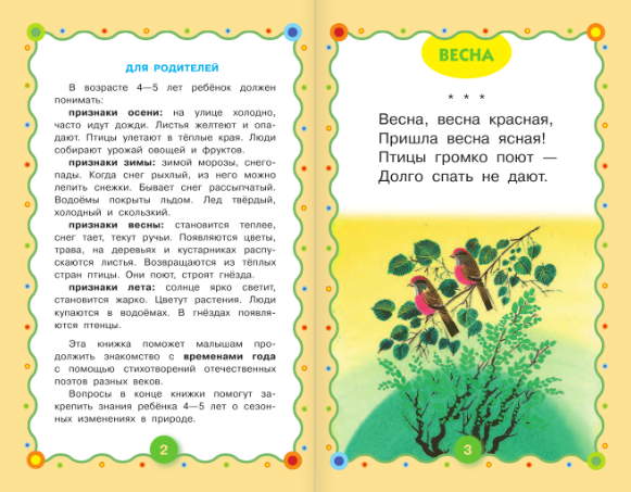 С помощью этой маленькой книжечки ребёнок 4-5 лет не только познакомится с прекрасными стихотворениями классических и современных поэтов о временах года, но и получит необходимые для своего возраста представления о сезонных изменениях в природе. Книгу открывает методическая подсказка для родителей, а вопросы в конце помогут закрепить знания ребёнка 4-5 лет о временах года.