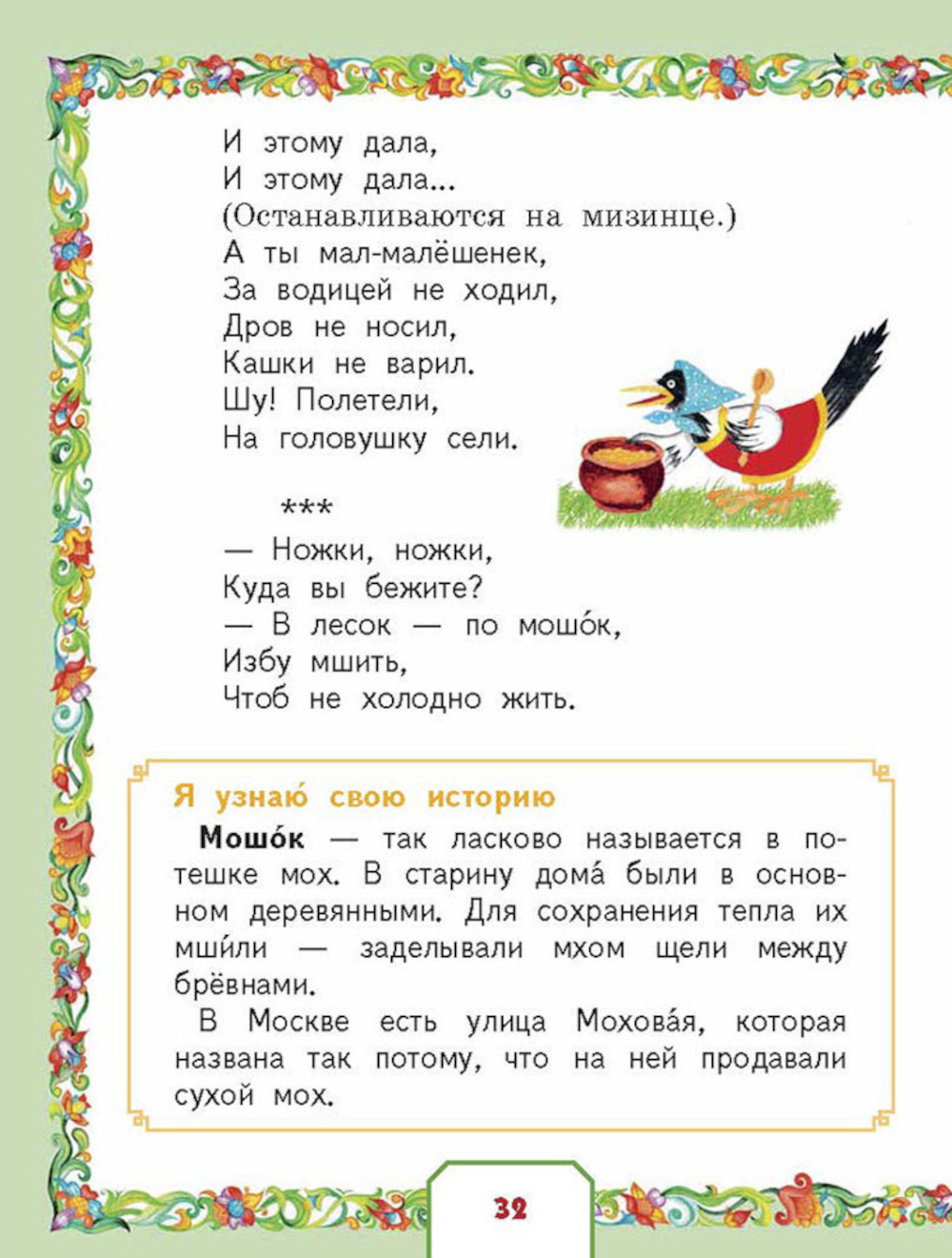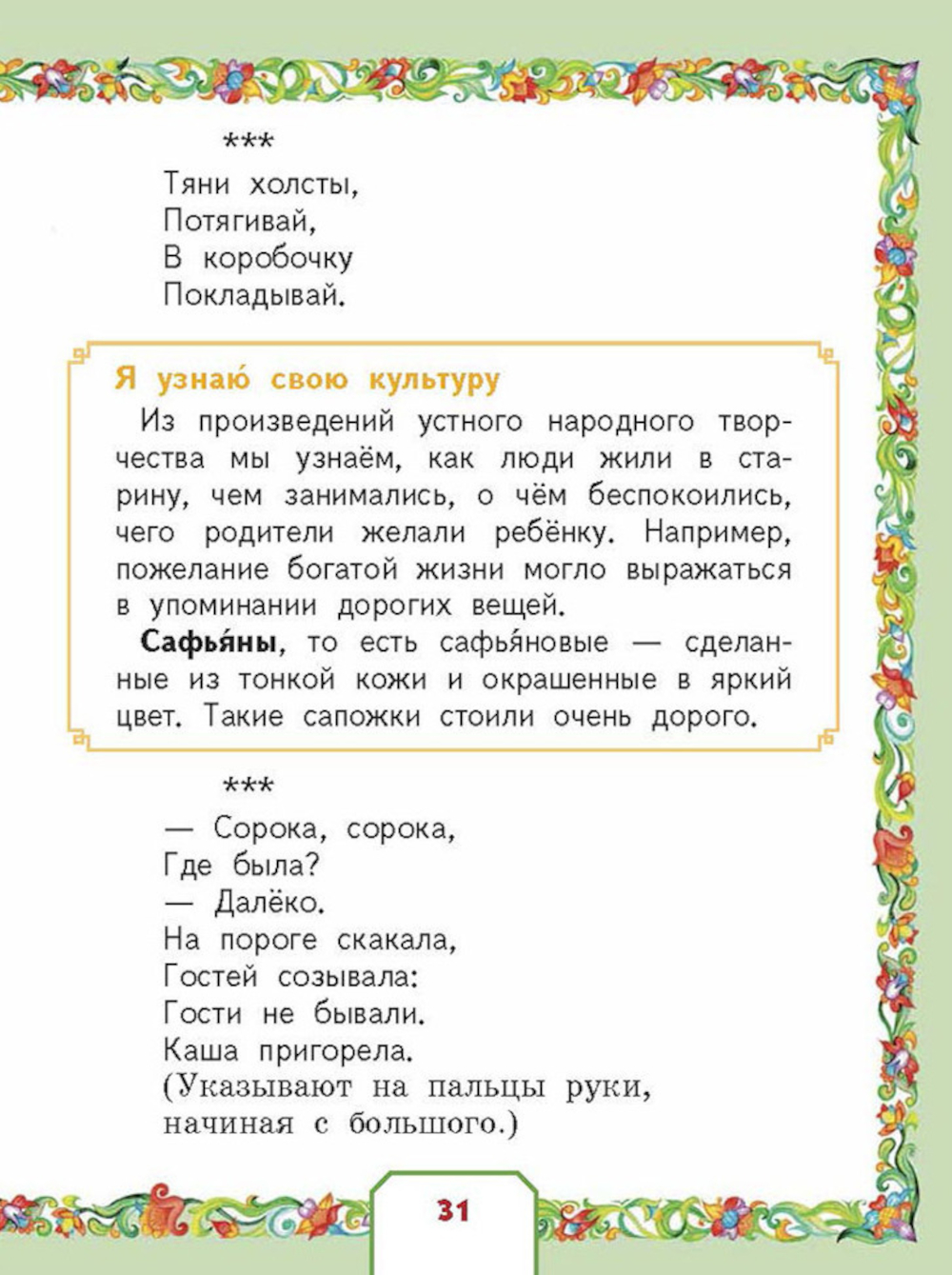 Сборник включает занимательные, шуточные и оригинальные произведения малых жанров фольклора и русские народные сказки, которые по-новому откроют юным читателям мир народного творчества. Состав сборника дополняет учебные тексты новыми, иногда малоизвестными произведениями народного творчества, а не повторяет произведения, рекомендуемые Федеральной рабочей программой и включённые в учебники литературного чтения. Дети узнают: - что такое загадки, пестушки, потешки, приговорки, побасёнки, колыбельные песни, докучные сказки, небывальщины, заклички, считалки и скороговорки; - чем пословицы отличаются от поговорок; - какие знания по родной истории и культуре содержатся в таких знакомых произведениях; - как можно обогатить свою речь, внимательно читая фольклорные произведения; - почему за знакомым названием сказки могут скрываться новые герои и незнакомое содержание. Разнообразный фольклорный материал сопровождается: - пояснением новых для детей слов, - интересными историческими фактами, - вопросами, - творческими заданиями, - заданиями для совместного обсуждения со взрослыми. Материал книги может быть использован на уроках литературного чтения, русского языка, во внеурочной деятельности и для семейного чтения.| Издательство | ИД Вахромеева |