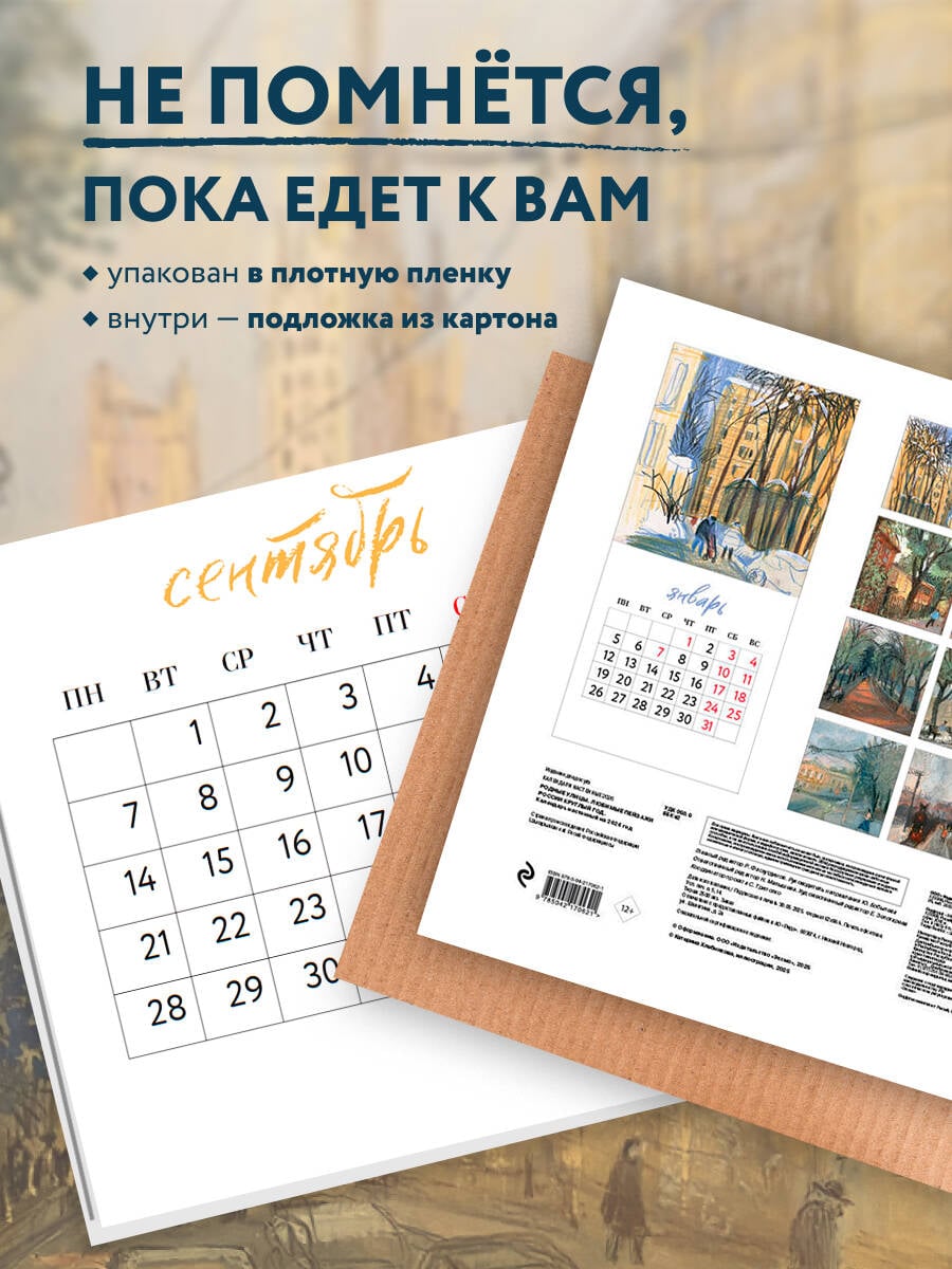 О серии: Наши настенные календари отличаются высоким качеством исполнения! Тщательно подобранные иллюстрации, напечатанные на глянцевой бумаге высочайшего качества, станут настоящим украшением дома, а в календарной сетке найдется место для ваших планов: большие клетки позволят делать записи и организовать свой год! В календаре также отмечены все государственные праздники. О календаре: Календарь с 12 пейзажными иллюстрациями от популярного художника vechniystudent (больше 23 тыс. подписчиков в социальных сетях!) Для кого: Для всех любителей пейзажных календарей. Технические параметры: Тип календаря - настенный перекидной. Год - 2026. Календарная сетка - с разбивкой по месяцам. Вид скрепления - скрепка. Ширина - 30 см. Высота - 30 см. Внутренний блок - мелованная бумага 115 г/м2. Подложка - плотный гофрокартон для поддержания формы. Индивидуальная упаковка в плотный целлофановый пакет.| Издательство | ООО "Издательство "Эксмо" |