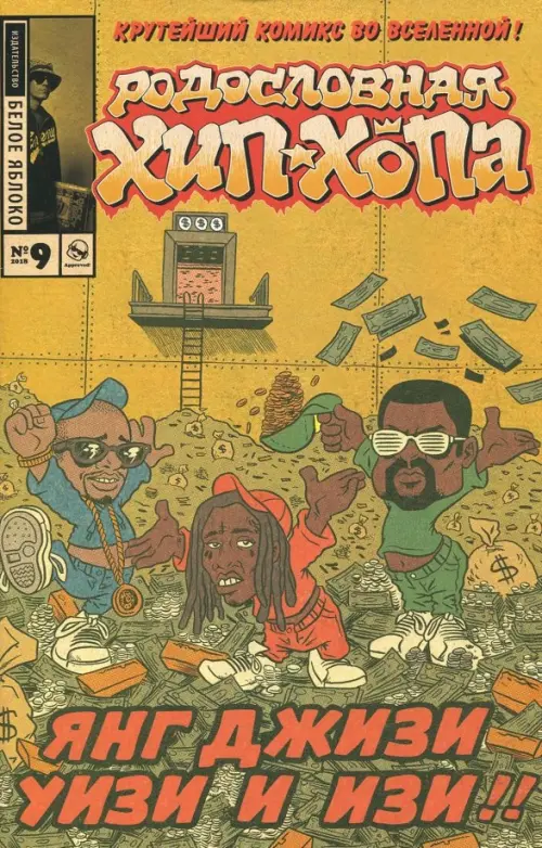 Этот номер отмечает совершенно новую эпоху в рэп-музыке, в которой BEASTIE BOYS становятся рэп-коллективом, RUN DMC превращаются в суперзвезд, а FAT BOYS выходят на сцену. В этом замечательном номере место нашлось всем нашим любимым рэпперам. 9-й номер «Родословной хип-хопа» Эда Пискора отправился по каналам связи на ftp-сервер типографии. Скоро зашумят-залязгают станки, и через несколько недель можно начинать трясти продавцов правильных торговых точек. И есть из-за чего. Во-первых, в этом номере рассказывается как бывшие панки Beastie Boys превратись в трио и переключились на рэп. Во-вторых, Run-DMC уже достигают статуса суперзвезд. В-третьих полиция и окружающий мир открывают для себя брейкданс. В-четвертых, аферисты тоже теперь хотят нагреть руки на новом хайпе. В-пятых, смешно восходит звезда трио Fat Boys. Мало? Тогда запасайтесь терпением, сами узнаете про все остальное. Что же касается обложки - Янг Джизи, Лил Уэйн и Канье Уэст здесь присутствуют в качестве хитрого оммажа одной из знаменитых обложек старых «Утиных историй».