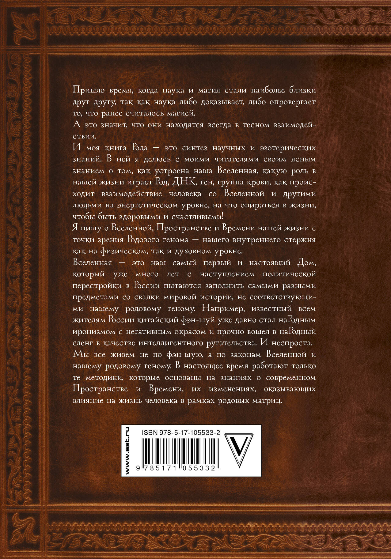 Первая книга о системе родовых матриц от яснознающей Фатимы Хадуевой! Мы живем в своей стране, своем городе, своем пространстве, ощущаем близость к своему кругу общения и находим силу и поддержку в семье. Поэтому и считается, что каждый человек живет одновременно в семи Домах. Первый Дом - планета Земля. Второй Дом - Род и страна рождения - Родина. Третий Дом - место жительства. Четвертый Дом - ментальная среда. Пятый Дом - Дом души. Шестой Дом - Дом денег. Седьмой Дом - Дом тела. Уже много лет я пытаюсь донести до каждого знание о том, что природа Домов играет огромную роль для полноценной жизни человека, его развития и продолжения Рода. И в этой книге я хочу помочь как можно большему числу людей быть счастливыми и здоровыми в своем истинном Доме!| Издательство | ИЗДАТЕЛЬСТВО "АСТ" |