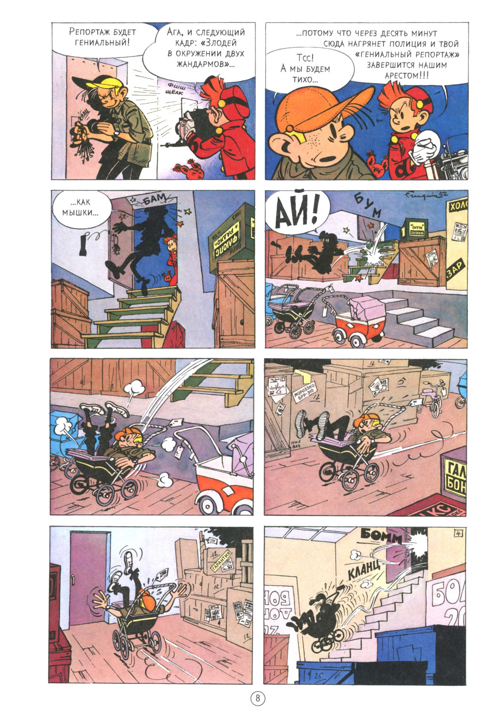 Задорный мальчуган Спиру в ярко-красном костюме грума, впервые появившийся на обложке одноимённого журнала в 1938 году, - настоящая легенда франко-бельгийского комикса. Вот уже 85 лет вместе со своим другом, неутомимым журналистом Фантазио, и верным спутником, смышлёной белкой по имени Спип, он путешествует по свету, расследует загадочные события, спасает тех, кто попал в беду, восстанавливает справедливость и наказывает злодеев, а по пути делает тысячи удивительных открытий. Серия о его приключениях насчитывает более 50 томов, а возможность нарисовать хотя бы одну историю про Спиру - честь для лучших комиксистов Европы. Важнейшее событие в судьбе Спиру - встреча с Андре Франкеном (1924-1997). Талантливый художник работал над серией почти четверть века и вывел ее на уровень подлинного шедевра 9-го искусства. На русском языке впервые выходят восемь из числа лучших альбомов Франкена, среди которых «Спиру и наследники», «Похитители марсупилами», «Дурная голова», «Логово мурены», «Гнездо марсупилами».