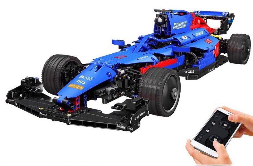 Качественные конструкторы для детей от четырнадцати лет. Набор состоит из 1065 элементов, из которых можно собрать дистанционно управляемый гоночный автомобиль Формулы-1. Транспортное средство движется во всех направлениях вперед, назад, вправо и влево. Управлять им можно с помощью пульта, входящего в комплект, или с помощью приложения на телефоне. Приложение можно скачать, отсканировав QR-код на упаковке. Благодаря приложению вы сможете не только перемещать транспортное средство, но и проектировать его движения. Он оснащен резиновыми шинами, которые обеспечивают хорошее сцепление с землей. Автомобиль питается от аккумулятора 7,4В (входит в комплект), пульт - от 2-х батареек ААА 1,5В (в комплект не входят).