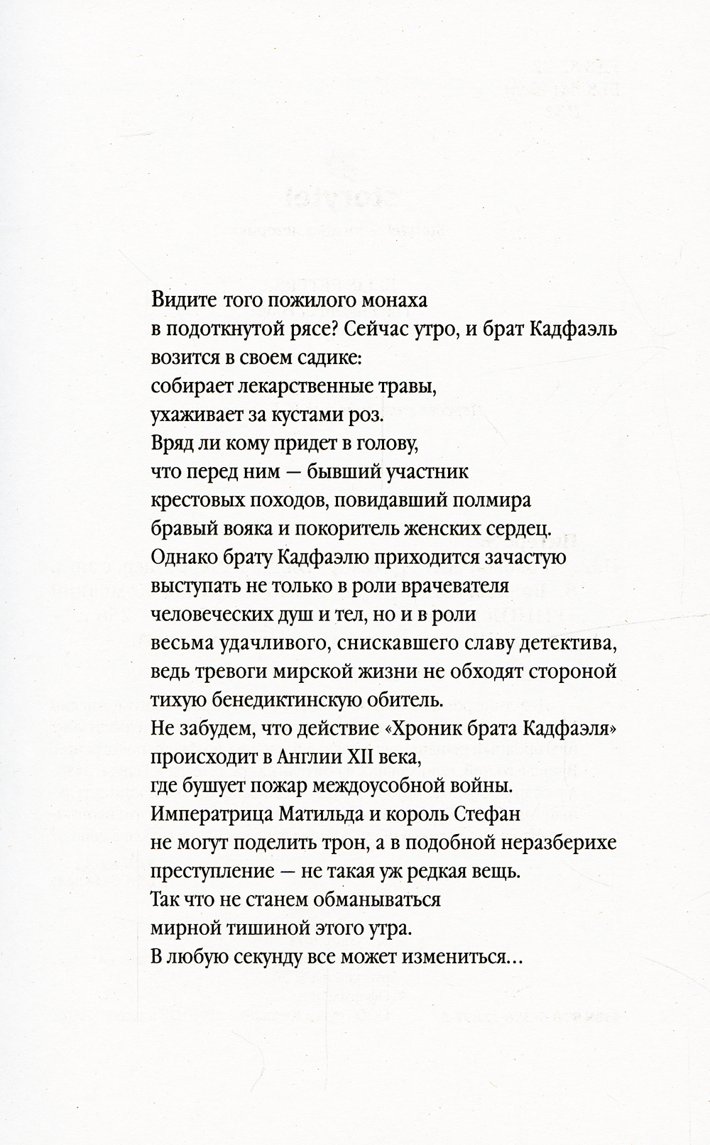 Действие романа «Роковой обет» (1984) происходит в Англии XII века, где бушует пожар гражданской войны. Предательски убит благородный рыцарь, а его наследник исчез, возбудив подозрения. В числе гостей, приехавших в обитель Святых Петра и Павла, находятся неразлучные друзья Мэтью и Сиаран. Однако проницательный глаз брата Кадфаэля замечает в их отношениях что-то необычное. Что же за роковой обет заставил этих двоих пуститься в дорогу?| Издательство | Рипол Классик |