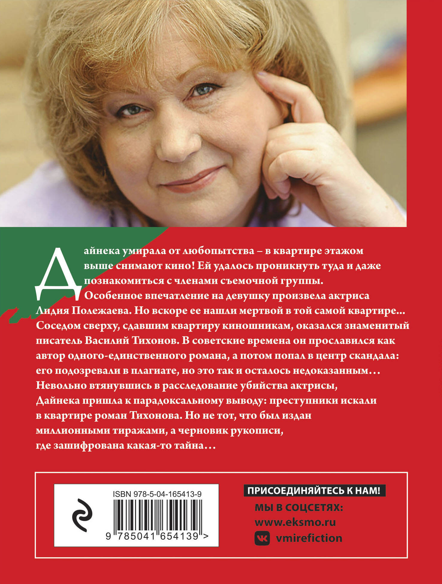 Дайнека умирала от любопытства - в квартире этажом выше снимают кино! Ей удалось проникнуть туда и даже познакомиться с членами съемочной группы. Особенное впечатление на девушку произвела актриса Лидия Полежаева. Но вскоре ее нашли мертвой в той самой квартире... Соседом сверху, сдавшим квартиру киношникам, оказался знаменитый писатель Василий Тихонов. В советские времена он прославился как автор одного-единственного романа, а потом попал в центр скандала: его подозревали в плагиате, но это так и осталось недоказанным… Невольно втянувшись в расследование убийства актрисы, Дайнека пришла к парадоксальному выводу: преступники искали в квартире роман Тихонова. Но не тот, что был издан миллионными тиражами, а черновик рукописи, где зашифрована какая-то тайна… В остросюжетных романах Анны Князевой расследуются преступления, следы которых уводят в прошлое и позволяют пролить свет на его загадки. Вслед за героями вы отправитесь навстречу старинным тайнам и увлекательным приключениям!| Издательство | Эксмо |