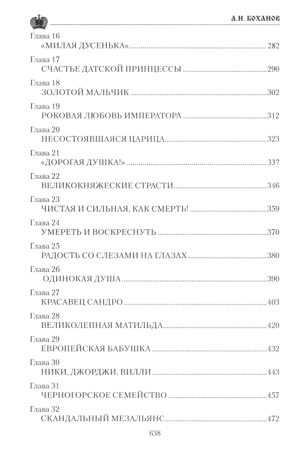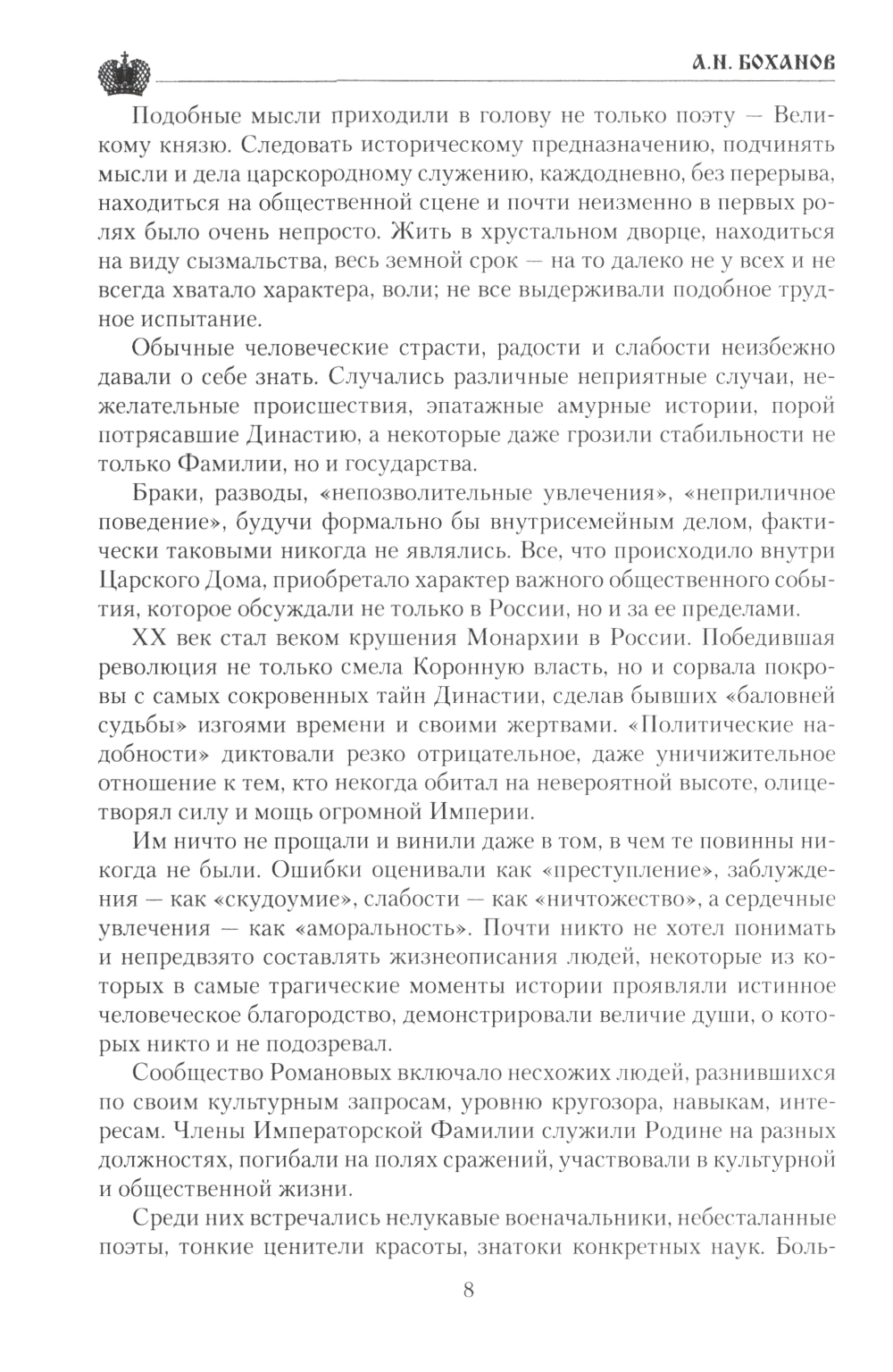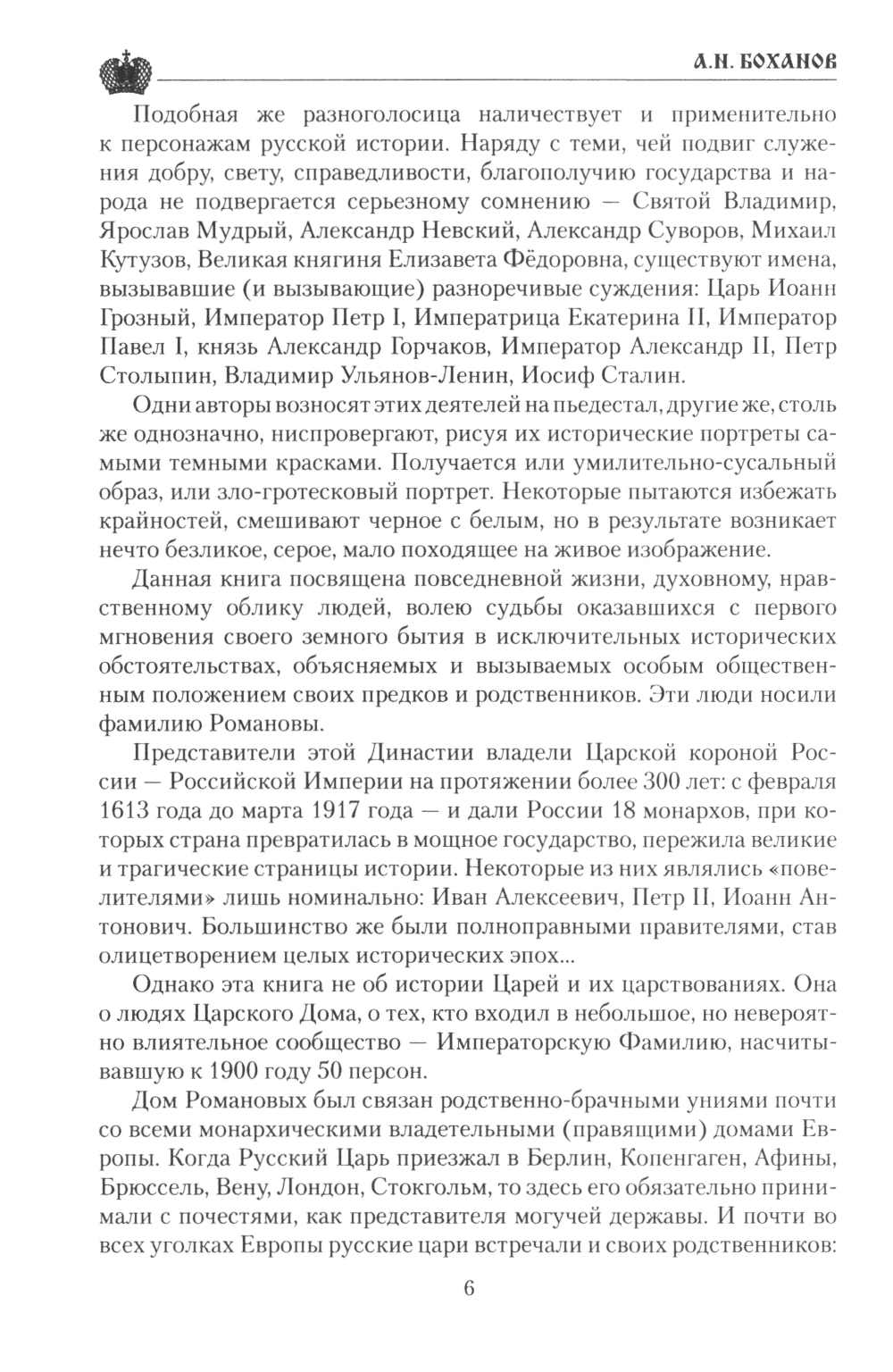 Книга известного российского историка, доктора исторических наук Александра Николаевича Боханова (1944-2019) рассказывает о судьбах династии Романовых. В кратких очерках автором рисуются портреты русских монархов от Михаила Федоровича до Николая II. В этой книге нет рассуждений о государственном служении монархов, набивших оскомину оценок «роли в истории» того или иного коронованного правителя России. Это рассказ о малоизвестных страницах истории дома Романовых.| Издательство | Вече |