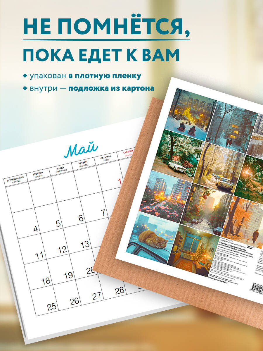 О серии: Наши настенные календари отличаются высоким качеством исполнения! Тщательно подобранные иллюстрации, напечатанные на глянцевой бумаге высочайшего качества, станут настоящим украшением дома, а в календарной сетке найдется место для ваших планов: большие клетки позволят делать записи и организовать свой год! В календаре также отмечены все государственные праздники. В серии настенных календарей издательства «ЭКСМО» каждый найдет тему по вкусу: великие художники, великолепные подборки с самыми знаменитыми произведениями искусства, легендарные кинематографические саги и игры, главные книжные авторы и бестселлеры, фотографии и иллюстрации любимых животных и многое-многое другое! О календаре: В этом календаре собраны атмосферные изображения, передающие узнаваемую и родную повседневную Россию: панельные дома, дворики, остановки и уютные городские пейзажи - все то, что вызывает теплую ностальгию. Каждый месяц - это зарисовка из жизни, где узнаются сцены детства, юности и сегодняшнего дня. Все изображения выполнены графическим дизайнером Дарьяной Олейник. Также в календарь включен дополнительный разворот с первыми четырьмя месяцами 2026 года! Для кого: Этот календарь отлично подойдет для тех, кто хочет насладиться красотами нашей страны. Технические параметры: - Тип календаря - настенный перекидной. - Год - 2026. - Календарная сетка - с разбивкой по месяцам. - Вид скрепления - скрепка. - Ширина - 30 см. - Высота - 30 см. - Внутренний блок - мелованная бумага 115 г/м2. - Подложка - плотный гофрокартон для поддержания формы. - Индивидуальная упаковка в плотный целлофановый пакет.| Издательство | ООО "Издательство "Эксмо" |
