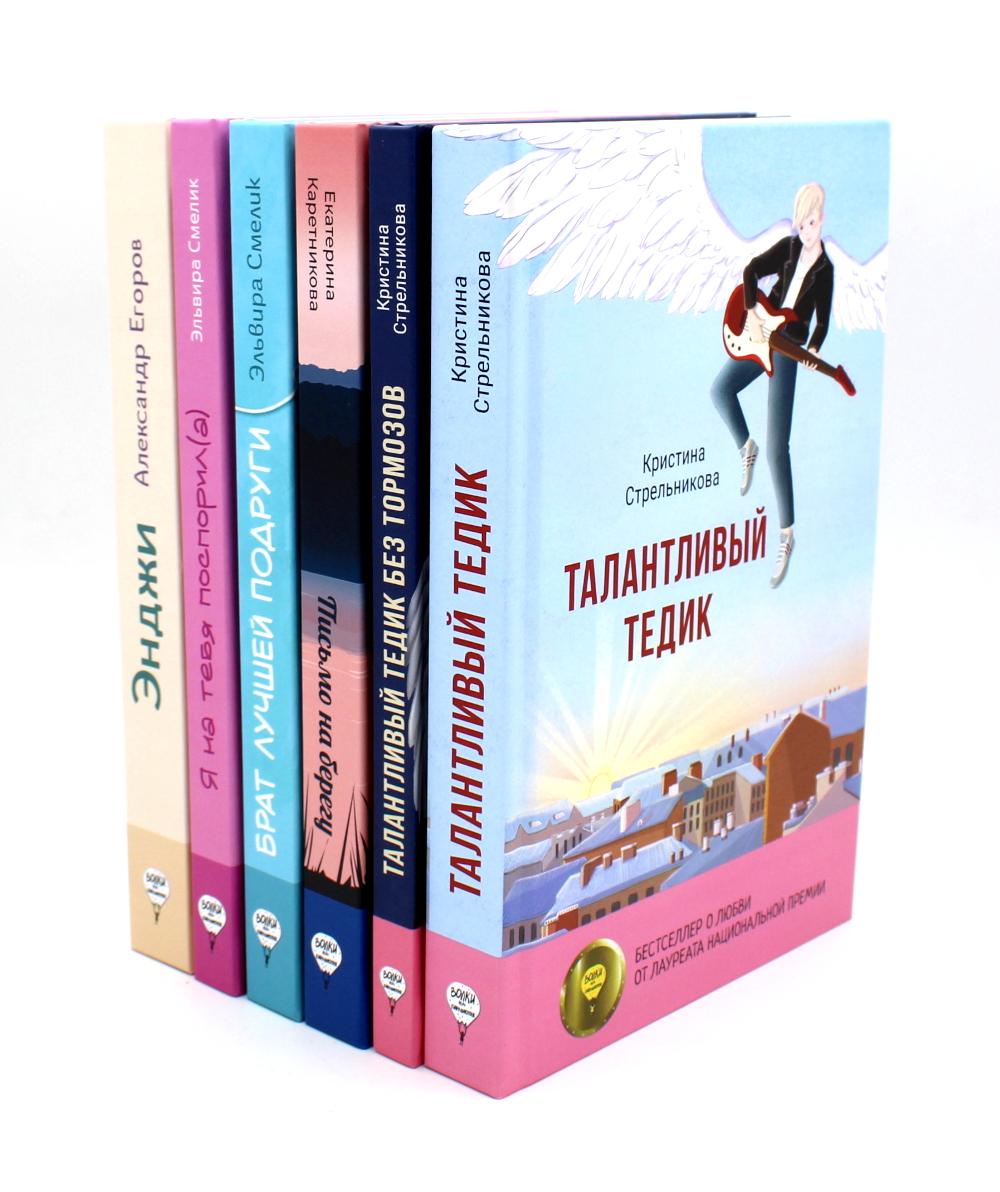 В комплекте шесть книг, говорящих с подростками на языке любви. «Талантливый Тедик» и «Талантливый Тедик без тормозов» Кристины Стрельниковой - история уличного музыканта, чья гениальность соседствует с инфантильностью, и девушки, которая верит в него больше, чем он сам. «Письмо на берегу» Екатерины Каретниковой - о сплетенных тайнами судьбах и проверке дружбы на прочность. «Энджи» Александра Егорова - честный роман о токсичных отношениях и поиске настоящей любви. «Я на тебя поспорил(а)» и «Брат лучшей подруги» Эльвиры Смелик - о юношеских чувствах и страстях, которые меняет время. Эти книги - про первую любовь и про ошибки, которые учат. Про взросление, где каждый шаг даётся нелегко, но именно он делает нас собой.| Издательство | ООО СмартБук |