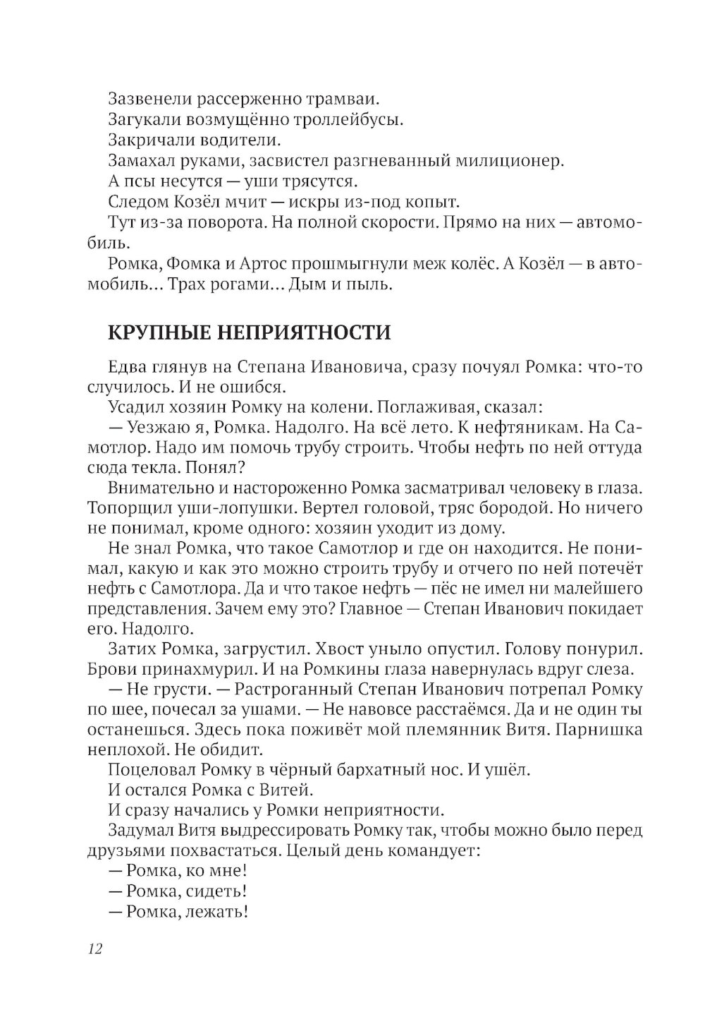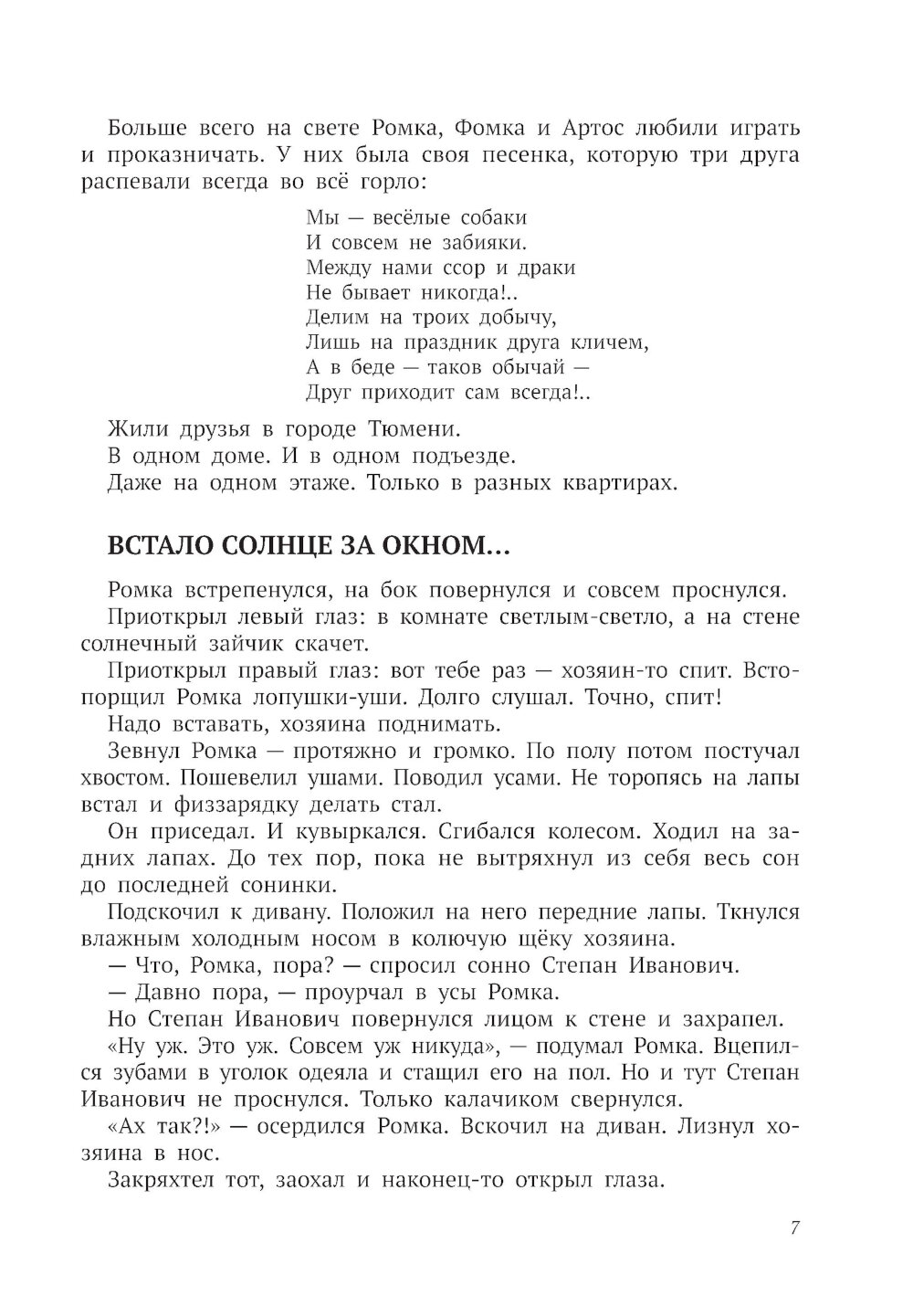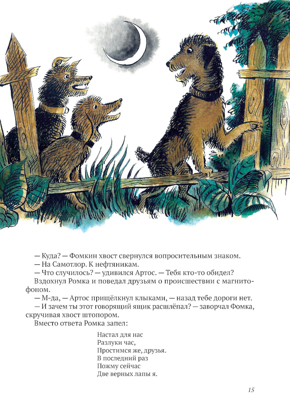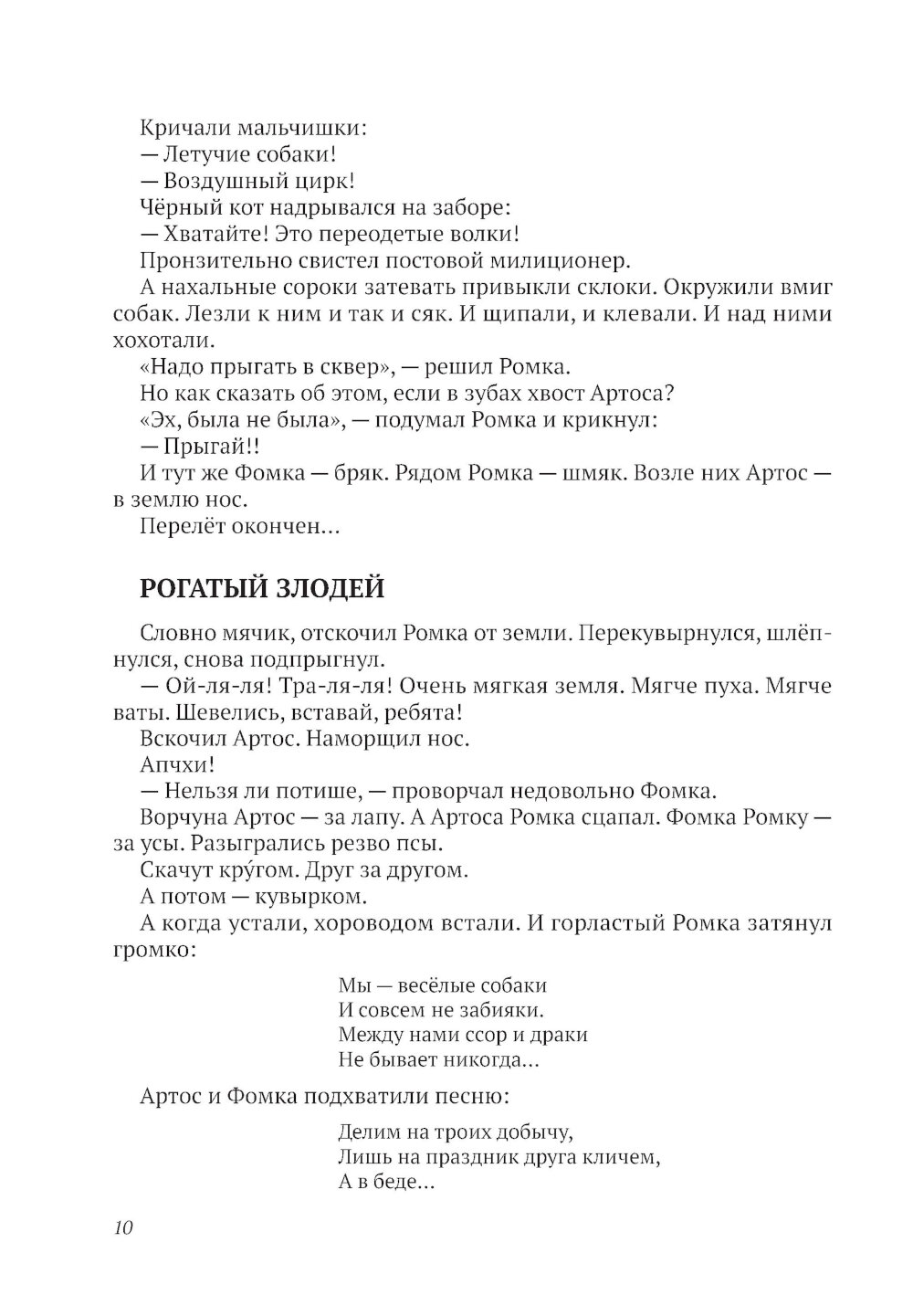 Сказочная повесть Константина Лагунова с красочными иллюстрациями А. Коровина расскажет младшим школьникам о приключениях трёх верных друзей - отважных и умных псах Ромке, Фомке и Артосе. Лохматым героям предстоит сразиться с чудовищами, выбраться с заколдованного острова и попасть на далёкий Север, чтобы отыскать хозяина Ромки. А во второй части книги четвероногие путешественники раскроют тайну Каменного леса и помогут диким зверям вернуться в любимую Африку. Но главное - они получат полезные жизненные уроки и обретут новых друзей. По повести снят советский трёхсерийный мультфильм, одинаково любимый как малышами, так и взрослыми. Прочитав книгу, дети поймут, что с помощью друзей можно одолеть самых страшных чудовищ - страх, малодушие, уныние, трусость и эгоизм. Это и есть настоящее волшебство, совершить которое под силу каждому! Эта книга научит ребёнка быть честным и смелым, отзывчивым и щедрым, ценить дружбу и доверять своим товарищам, не отступать от намеченной цели и быть готовым прийти на выручку.| Издательство | Доброе детство |