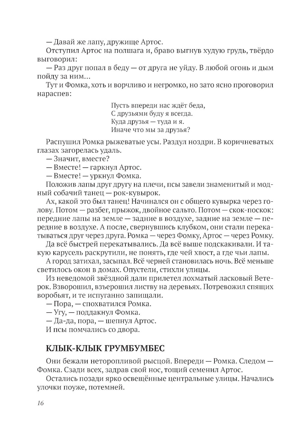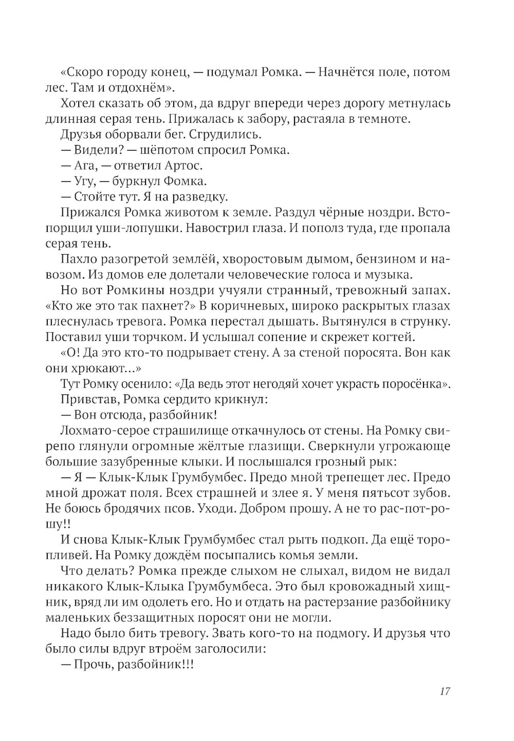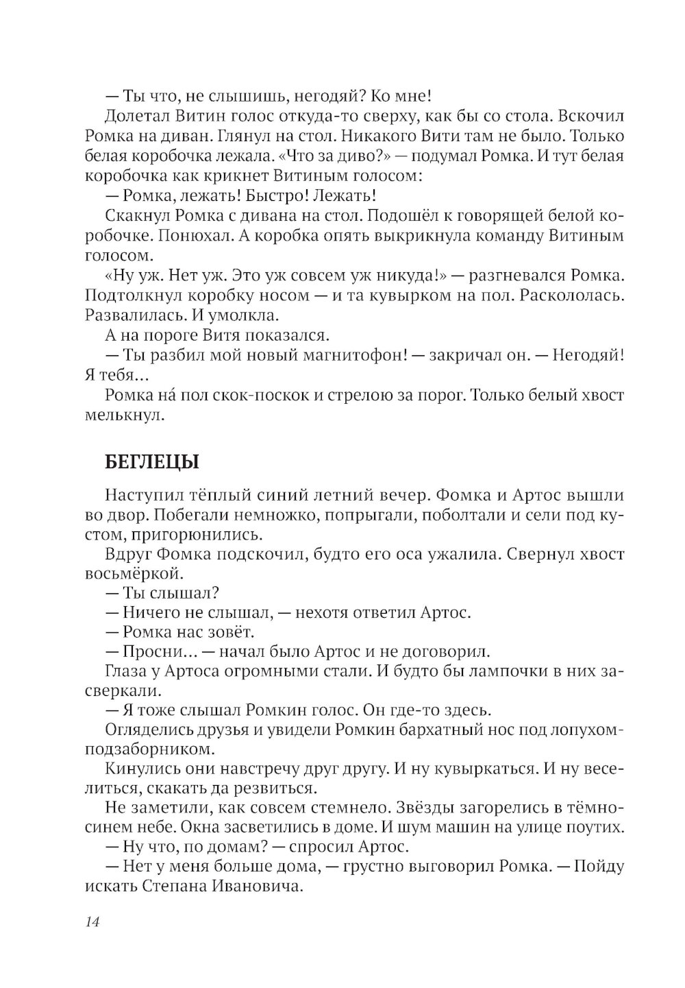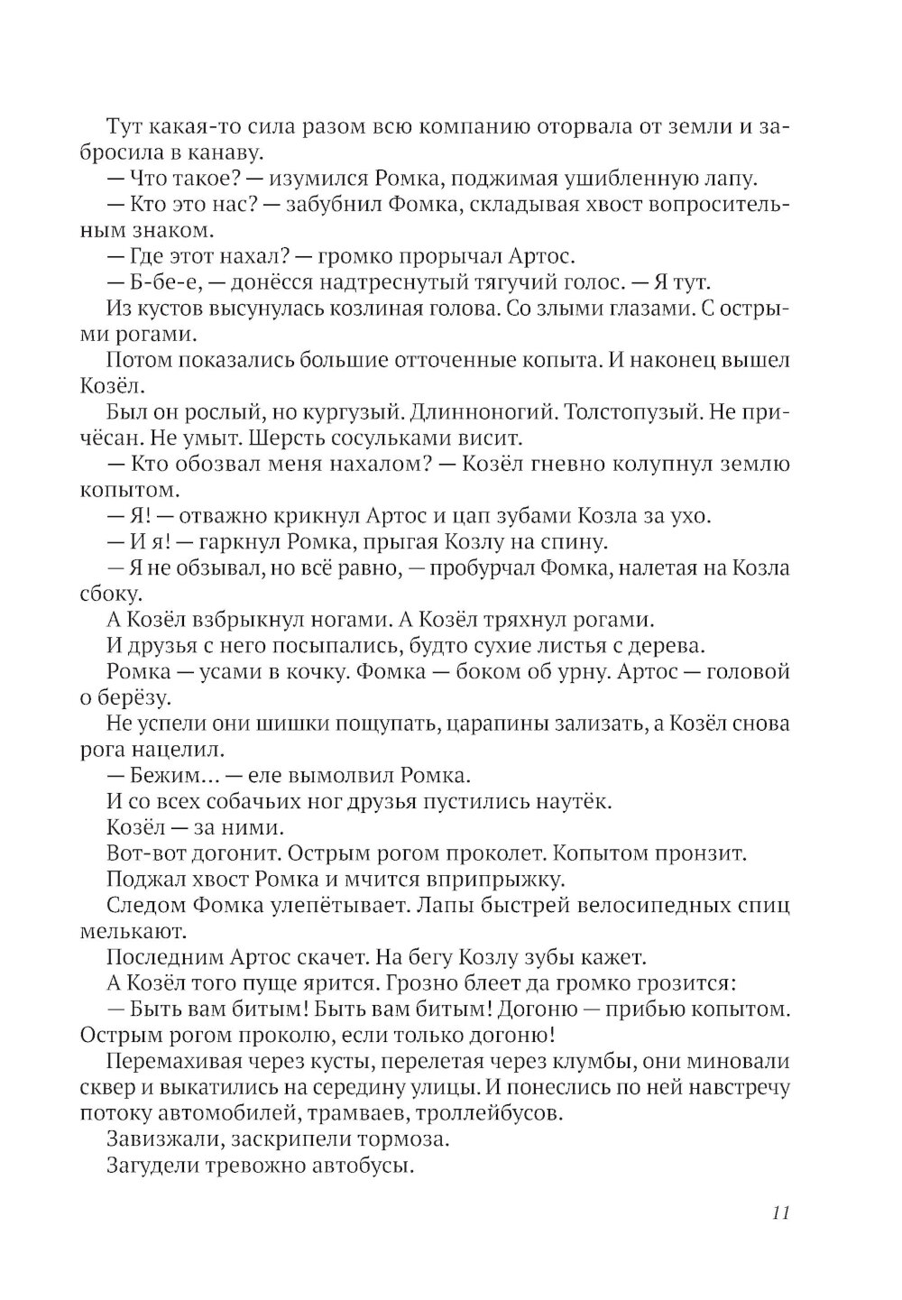 Сказочная повесть Константина Лагунова с красочными иллюстрациями А. Коровина расскажет младшим школьникам о приключениях трёх верных друзей - отважных и умных псах Ромке, Фомке и Артосе. Лохматым героям предстоит сразиться с чудовищами, выбраться с заколдованного острова и попасть на далёкий Север, чтобы отыскать хозяина Ромки. А во второй части книги четвероногие путешественники раскроют тайну Каменного леса и помогут диким зверям вернуться в любимую Африку. Но главное - они получат полезные жизненные уроки и обретут новых друзей. По повести снят советский трёхсерийный мультфильм, одинаково любимый как малышами, так и взрослыми. Прочитав книгу, дети поймут, что с помощью друзей можно одолеть самых страшных чудовищ - страх, малодушие, уныние, трусость и эгоизм. Это и есть настоящее волшебство, совершить которое под силу каждому! Эта книга научит ребёнка быть честным и смелым, отзывчивым и щедрым, ценить дружбу и доверять своим товарищам, не отступать от намеченной цели и быть готовым прийти на выручку.| Издательство | Доброе детство |