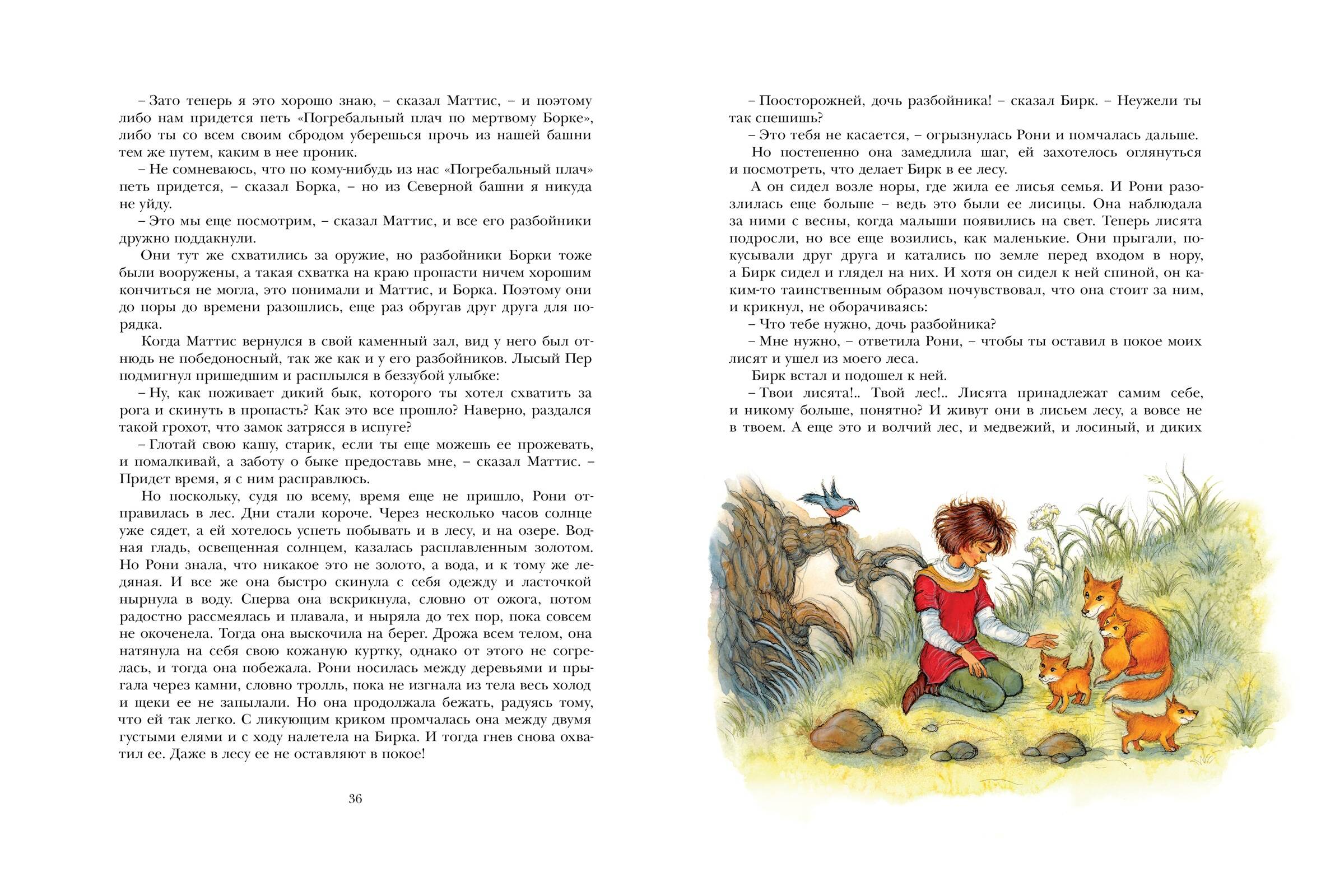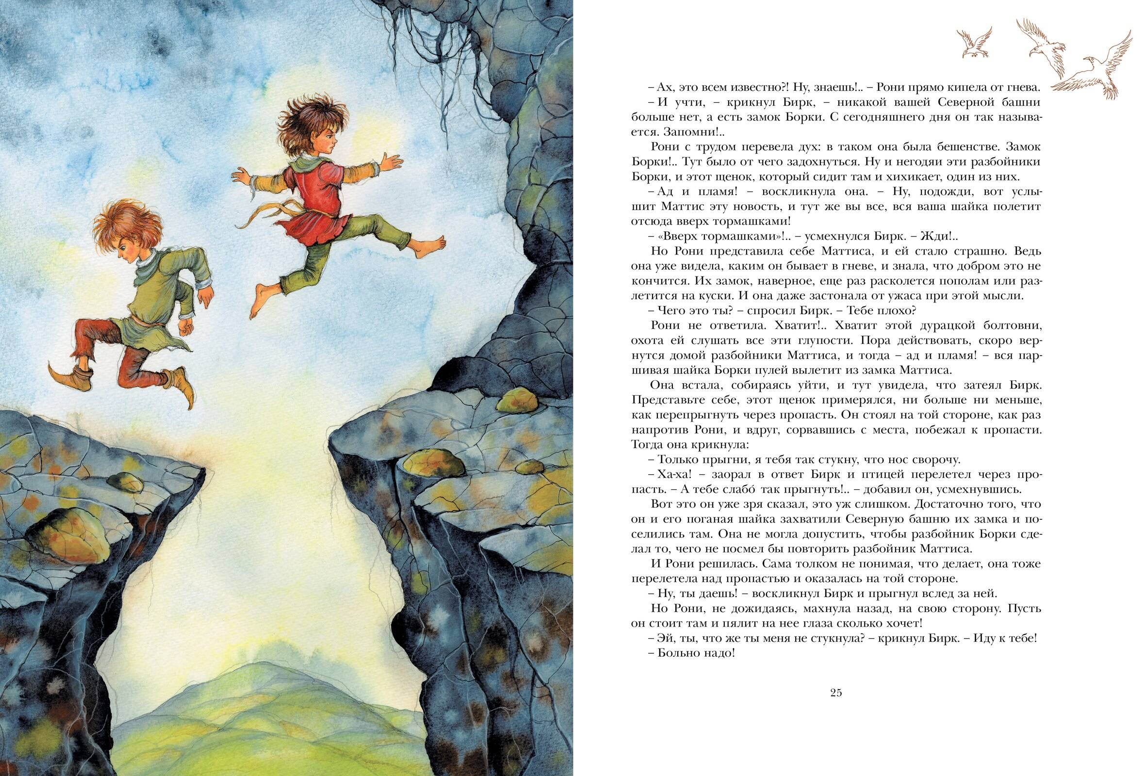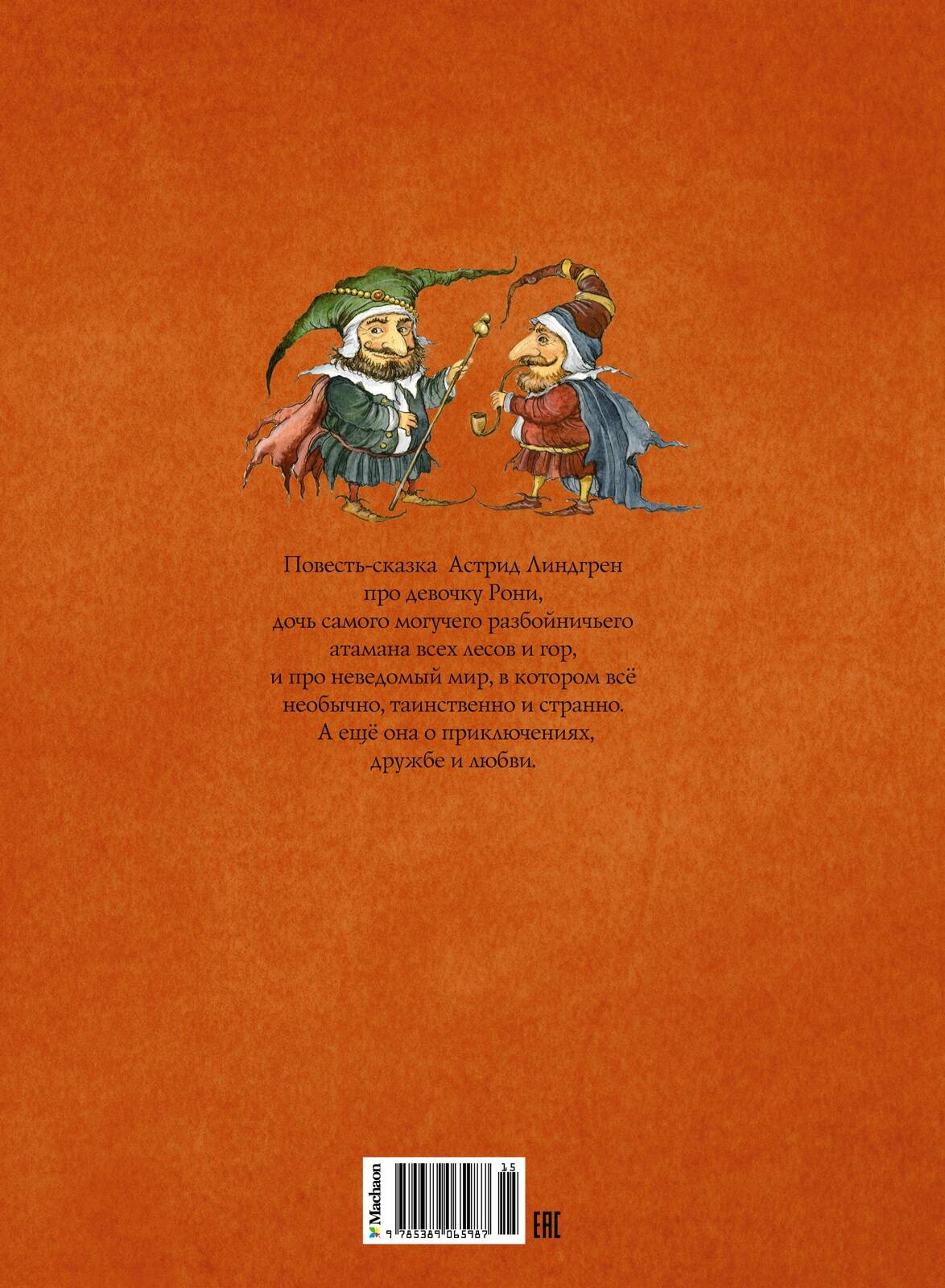 Повесть-сказка Астрид Линдгрен про девочку Рони, дочь самого могучего разбойничьего атамана всех лесов и гор, и про неведомый мир, в котором все необычно, таинственно и странно. А еще она о приключениях, дружбе и любви.