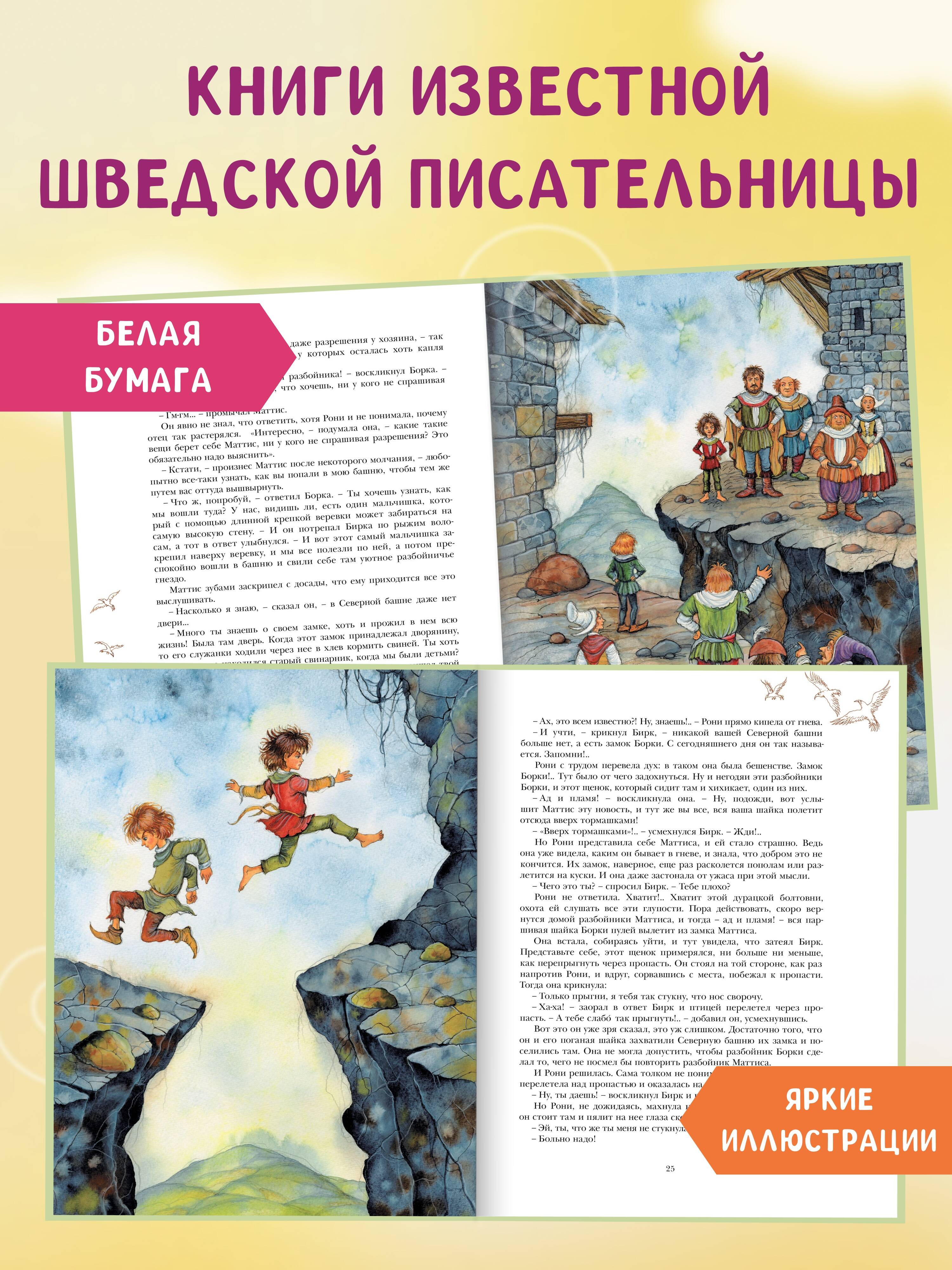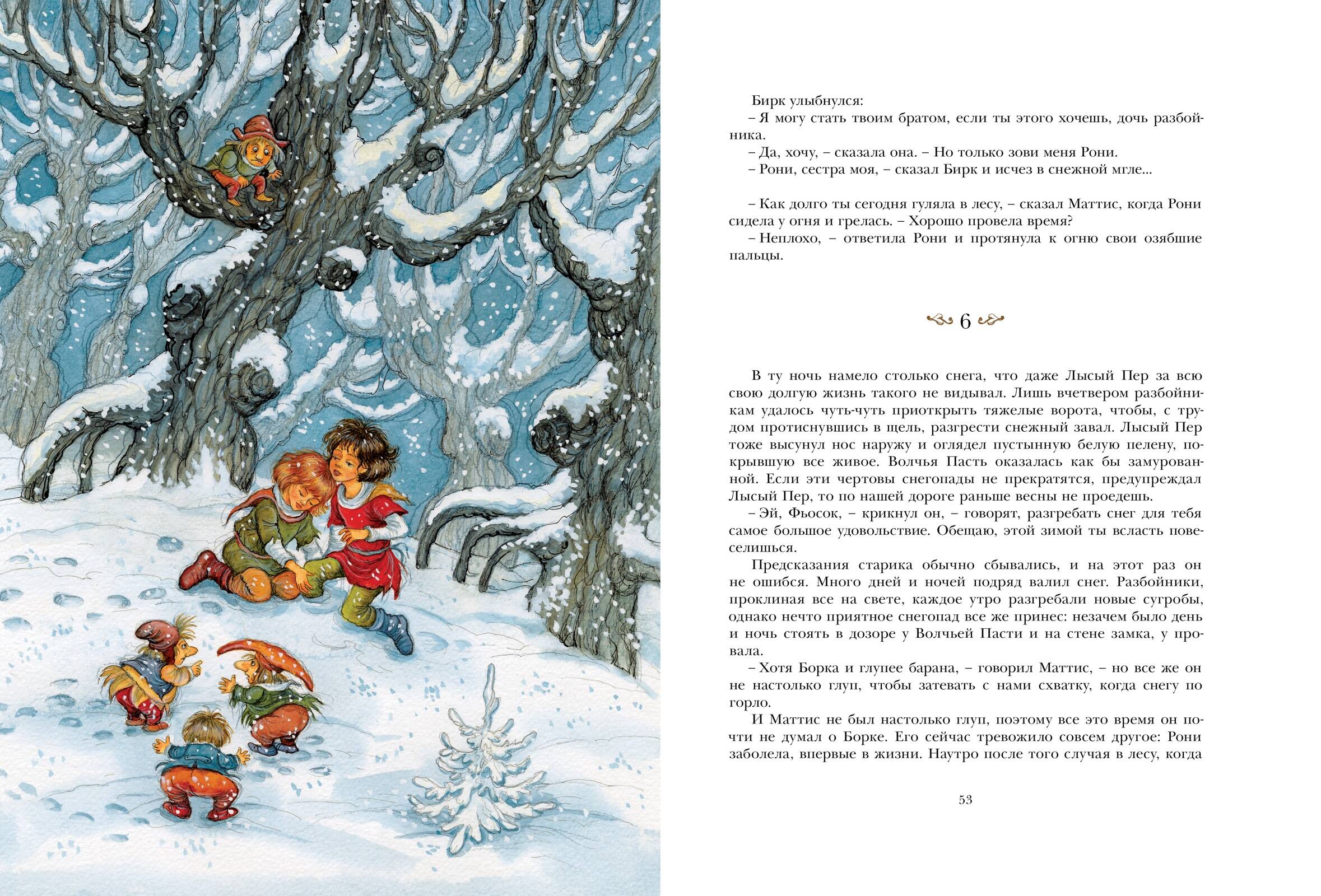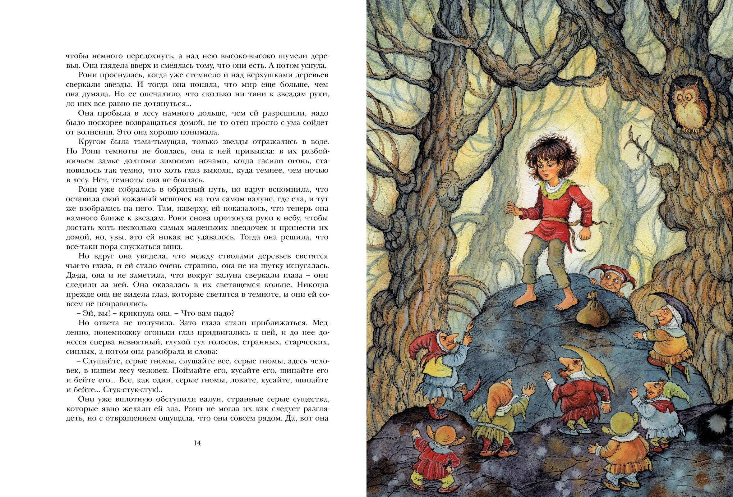 Повесть-сказка Астрид Линдгрен про девочку Рони, дочь самого могучего разбойничьего атамана всех лесов и гор, и про неведомый мир, в котором все необычно, таинственно и странно. А еще она о приключениях, дружбе и любви.
