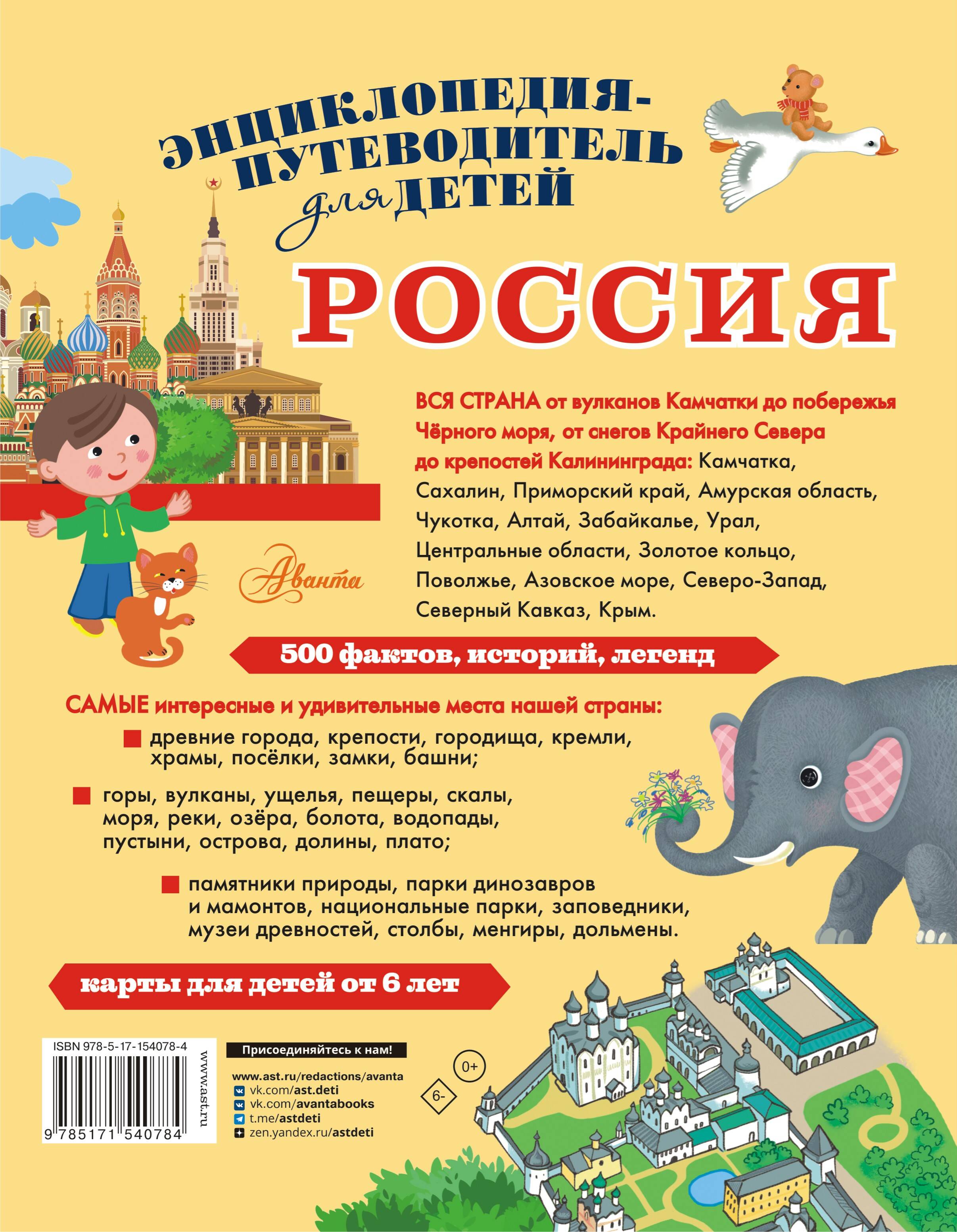 Энциклопедия-путеводитель "Россия" поможет вам путешествовать и изучать нашу страну всей семьей. Ведь уникальные карты и интереснейшая информация рассчитаны не только на взрослых, но и на детей. Писатель и активный путешественник Любовь Бросалина поместила в нашу энциклопедию-путеводитель те экскурсии, которые будут по силам и вызовут интерес у ребят. Подробные указания, как добраться до нужного места, задания для детей, которые можно предложить ребёнку после прогулки или во время неё, потрясающие фотографии лучших отечественных фотографов и детские карты, помогут взрослым и детя путешествовать по нашей стране и детально изучить самые удивительные и интересные места России от Дальнего Востока до побережья Чёрного моря, от Крайнего Севера до Калининграда. Изучай Россию с энциклопедией-путеводителем!| Издательство | ИЗДАТЕЛЬСТВО "АСТ" |