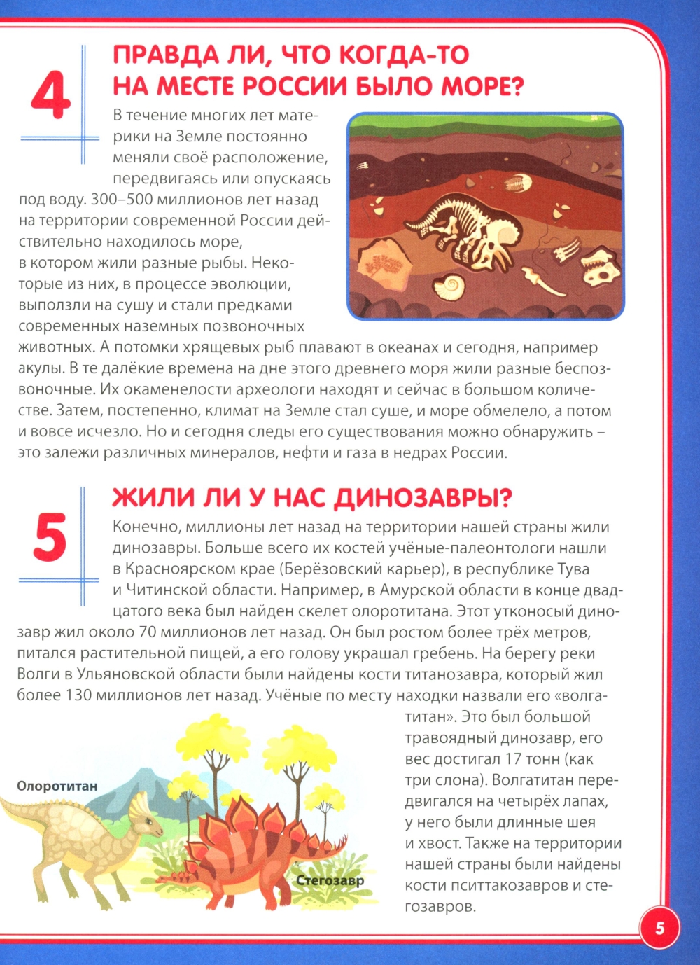 «Россия. 123 вопроса-123 ответа» - это книга про наше государство, самое большое по территории в мире, в котором живут самые разные народы со своей славной историей и культурой. На страницах этой красочной книги ваш ребёнок познакомится с историей и обычаями, народными промыслами, природой и животным миром нашей родины, а также узнает, сколько людей проживает в нашей стране, какие народы её населяют, чем они знамениты, и ещё много нового и интересного. Яркая книга с иллюстрациями к каждому ответу - прекрасный подарок вашему ребёнку!| Издательство | Владис |