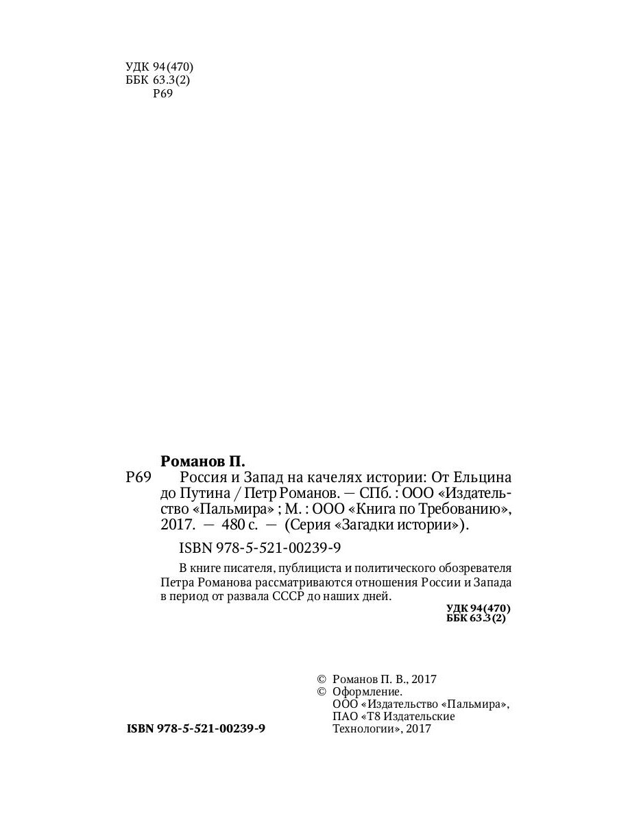 В книге писателя, публициста и политического обозревателя Петра Романова рассматриваются отношения России и Запада в период от развала СССР до наших дней.| Издательство | Пальмира |