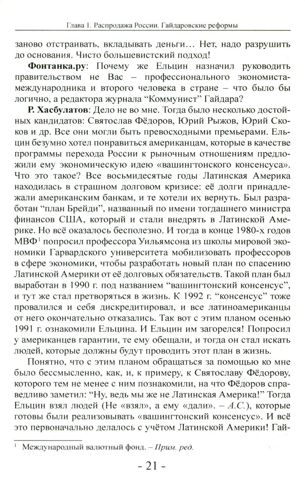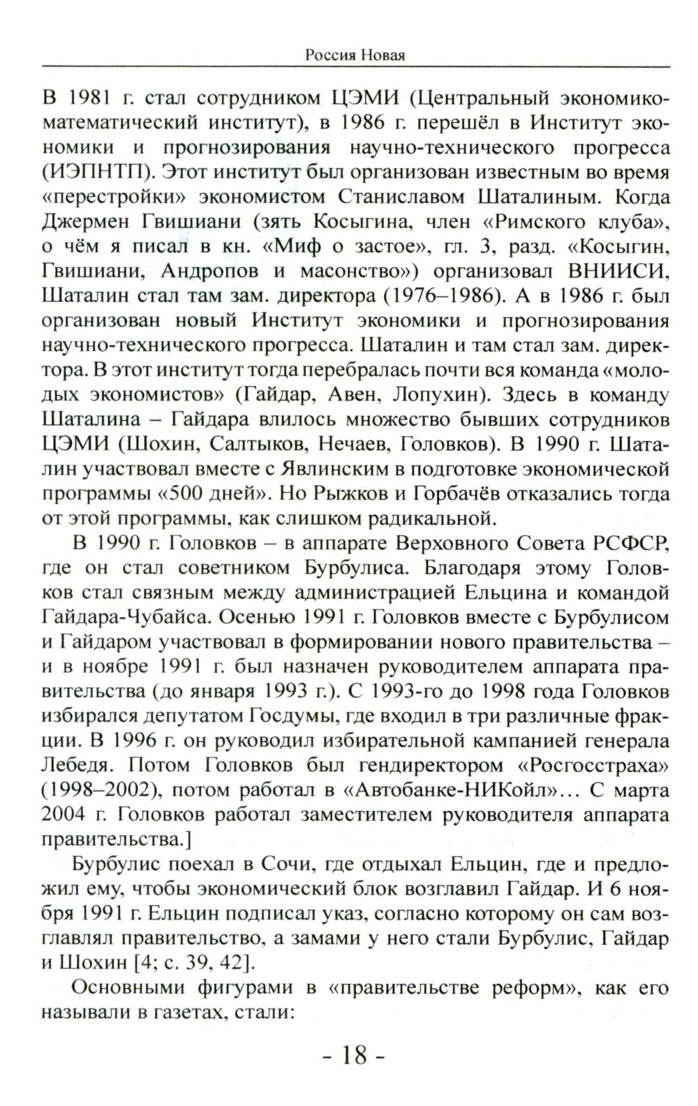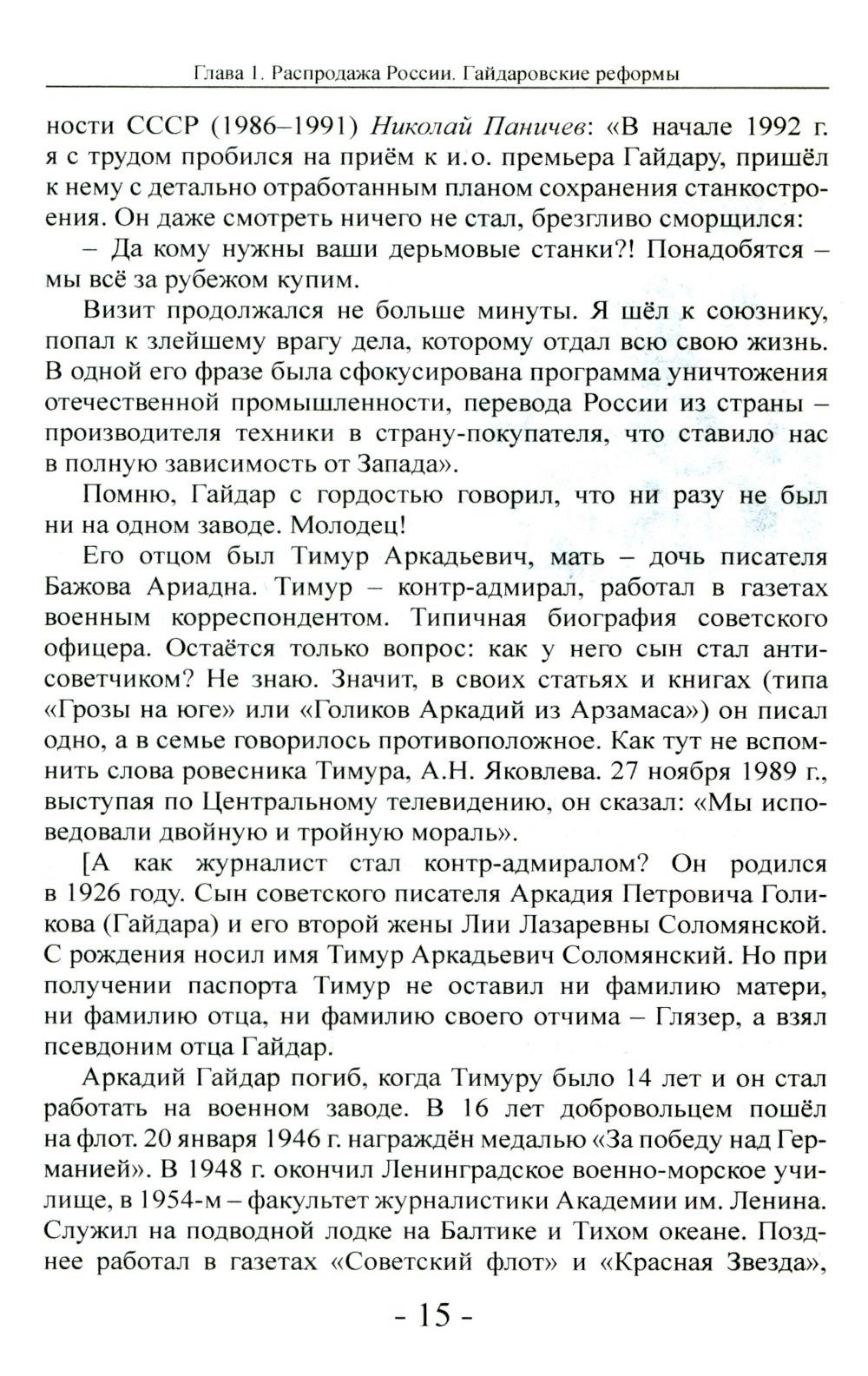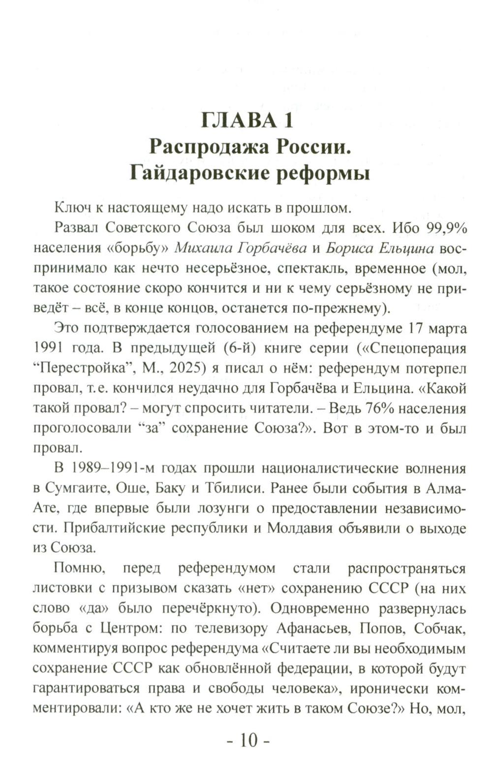 Эта книга об истории ельцинских «реформ». Сегодня, благодаря последствиям политики Ельцина, в Москве (и в стране) осталось мало свидетелей тех событий. Более того, сегодня в магазинах нет книг с детальным описанием того периода - случайно? Но этот период изучать надо - чтобы помнили и делали выводы. В книге автор показал, как на рубеже XX-XXI веков произошло превращение России из мировой сверхдержавы в нищую страну - это крушение произошло в мирное время всего за несколько лет. Автор провёл детальное исследование процесса «реформ». В книге говорится и о преступлении ельцинского режима - Чеченской войне, о её неприглядной подоплёке. Также раскрывается в подробностях процесс передачи власти от Ельцина - Путину и о дальнейшей политики нового президента. Эта книга - ценная информация к размышлению о причинах страшной трагедии, последствия которой мы ощущаем до сих пор. Книга адресована широкому кругу читателей, стремящихся и объективно и непредвзято познать историю Отечества и ратным трудом в тылу и на фронте созидающих новую Великую Россию.