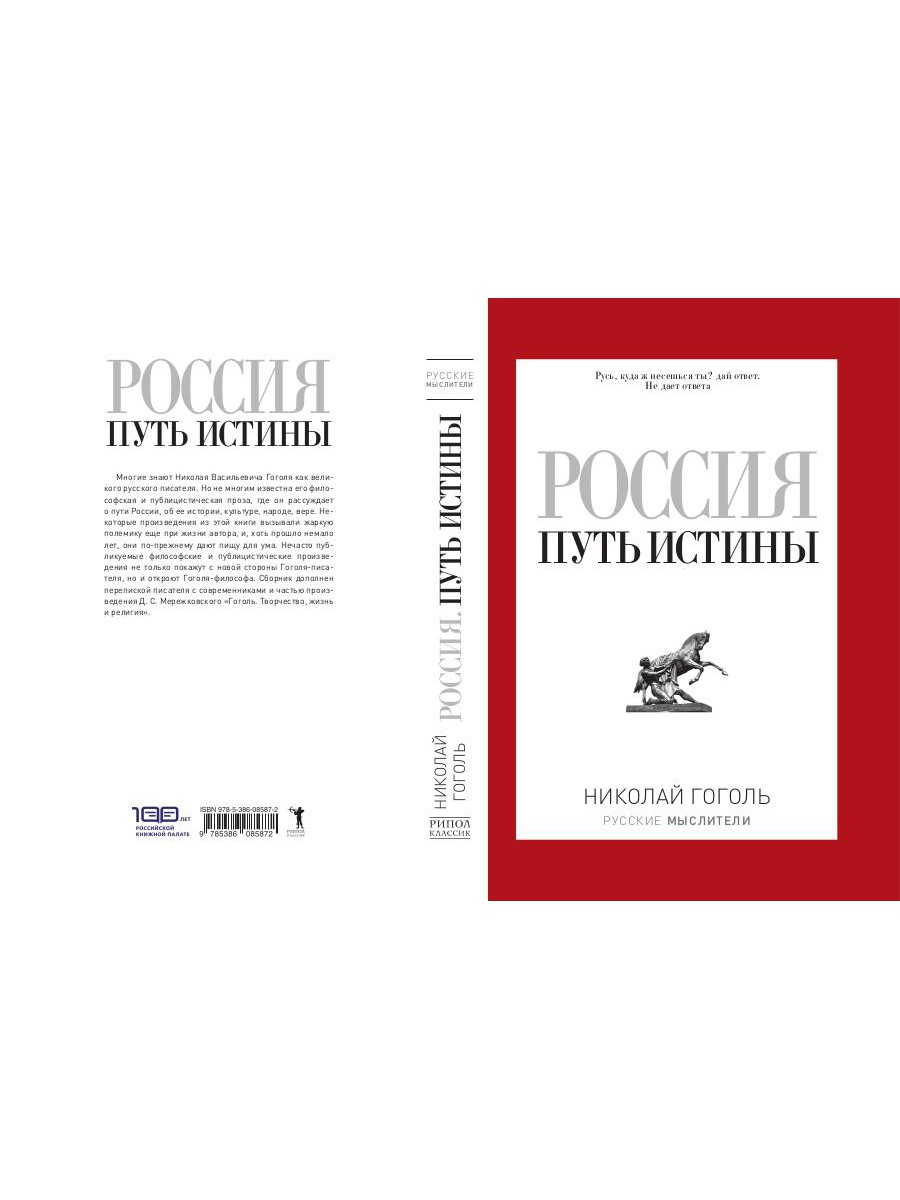 Многие знают Николая Васильевича Гоголя как великого русского писателя. Но не многим известна его философская и публицистическая проза, где он рассуждает о пути России, об ее истории, культуре, народе, вере. Некоторые произведения из этой книги вызывали жаркую полемику еще при жизни автора, и, хоть прошло немало лет, они по-прежнему дают пищу для ума. Нечасто публикуемые философские и публицистические произведения не только покажут с новой стороны Гоголя-писателя, но и откроют Гоголя-философа. Сборник дополнен перепиской писателя с современниками и частью произведения Д.С. Мережковского «Гоголь. Творчество, жизнь и религия».| Издательство | Рипол Классик |